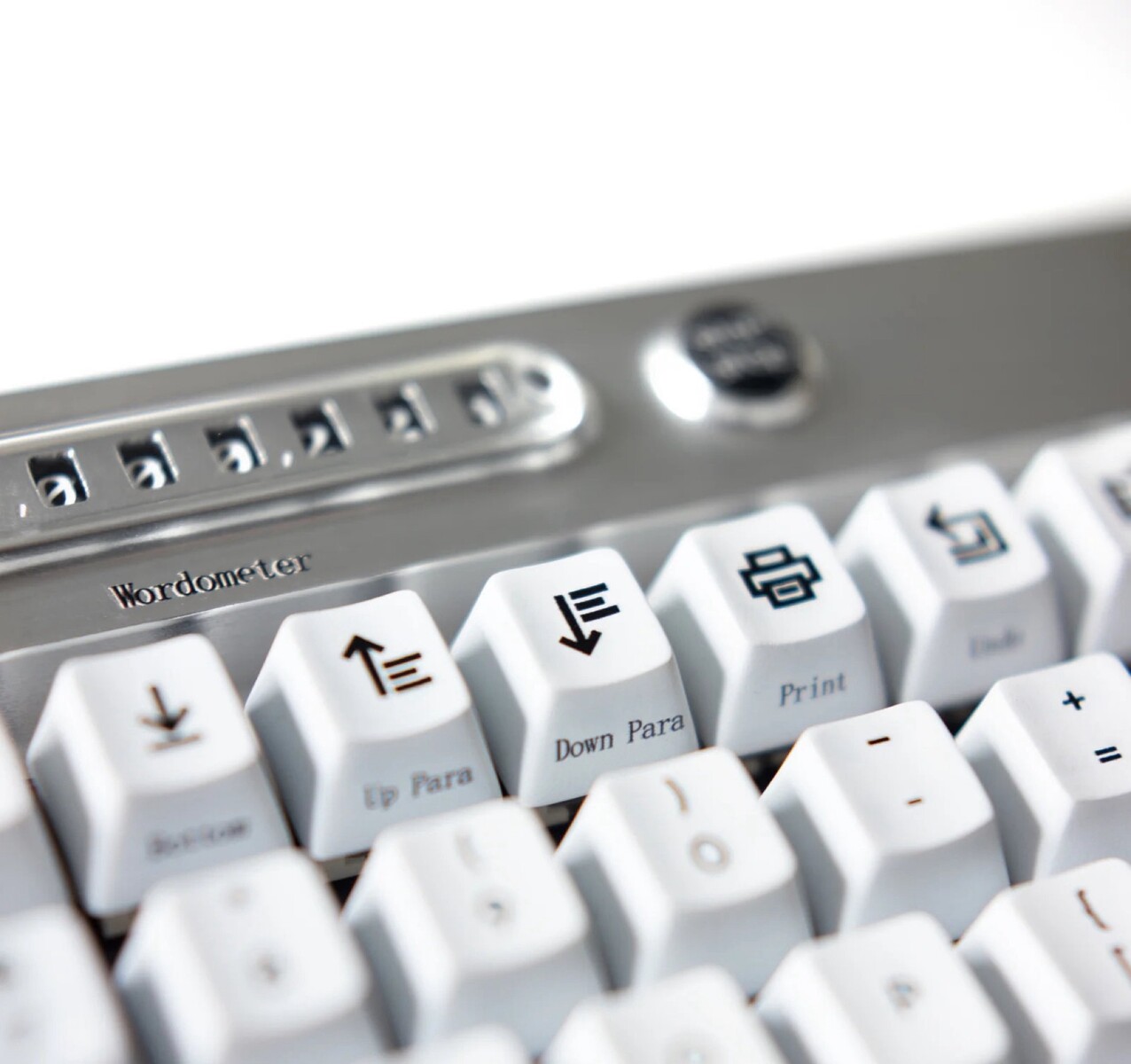 Het tweede display is een zogenaamde wordometer, een woordenteller die laat zien hoeveel woorden er zijn getypt sinds de laatste reset. Met een start-stopknop kunnen gebruikers de wordometer op elk gewenst moment pauzeren, zodat hij bijvoorbeeld niet een webzoekopdracht of chatbericht telt. Beide displays gebruiken wielen die door een motor worden gedraaid om de corresponderende getallen van 0 tot 9 weer te geven. Hierdoor kunnen de schermen informatie weergeven, maar ook de schrijfvoortgang op een voelbare en hoorbare manier bijhouden.