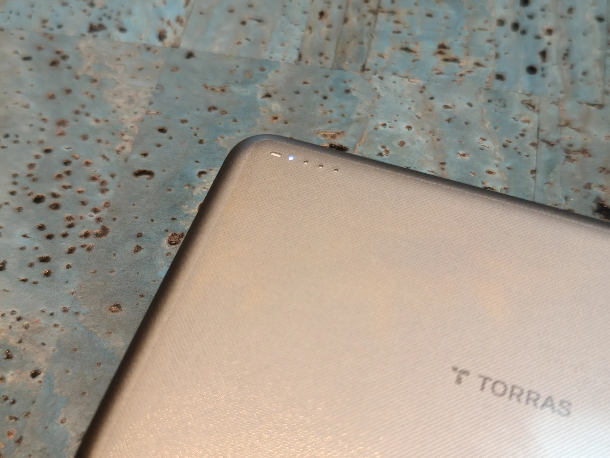 Torras heeft het scharniermechanisme aan de binnenkant bedekt met een eenvoudige sticker, wat er een beetje slordig uitziet.