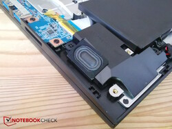 De stereoluidsprekers bevinden zich in de voorste hoeken van de laptop; ze zijn vrij klein en stralen naar beneden. Daarom zouden ze luider kunnen zijn en missen ze lage tonen. De hoge en middentonen zijn tenminste in balans.
