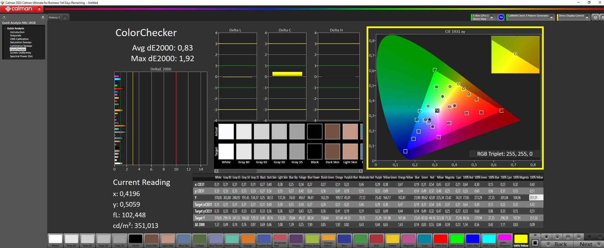 ΔE ColorChecker Calman: 0.83 | ∀{0.5-29.43 Ø4.78}