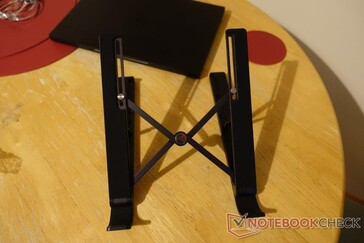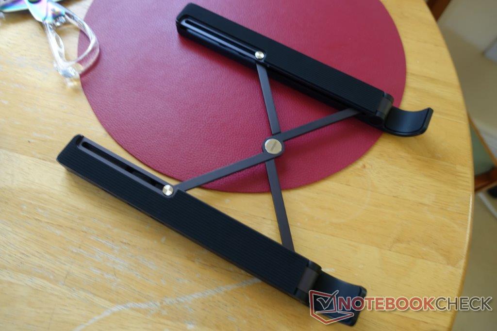 Het bovenste oppervlak van de naafstandaard is bedekt met een antislipmateriaal in een getextureerd patroon, dat, in combinatie met de gebogen onderrand, ervoor zorgt dat de betreffende laptop na plaatsing nergens naartoe gaat. Dit geldt voor een Razer Blade Stealth, die de X-Kit feilloos en veilig in al zijn hoeken opstutten.