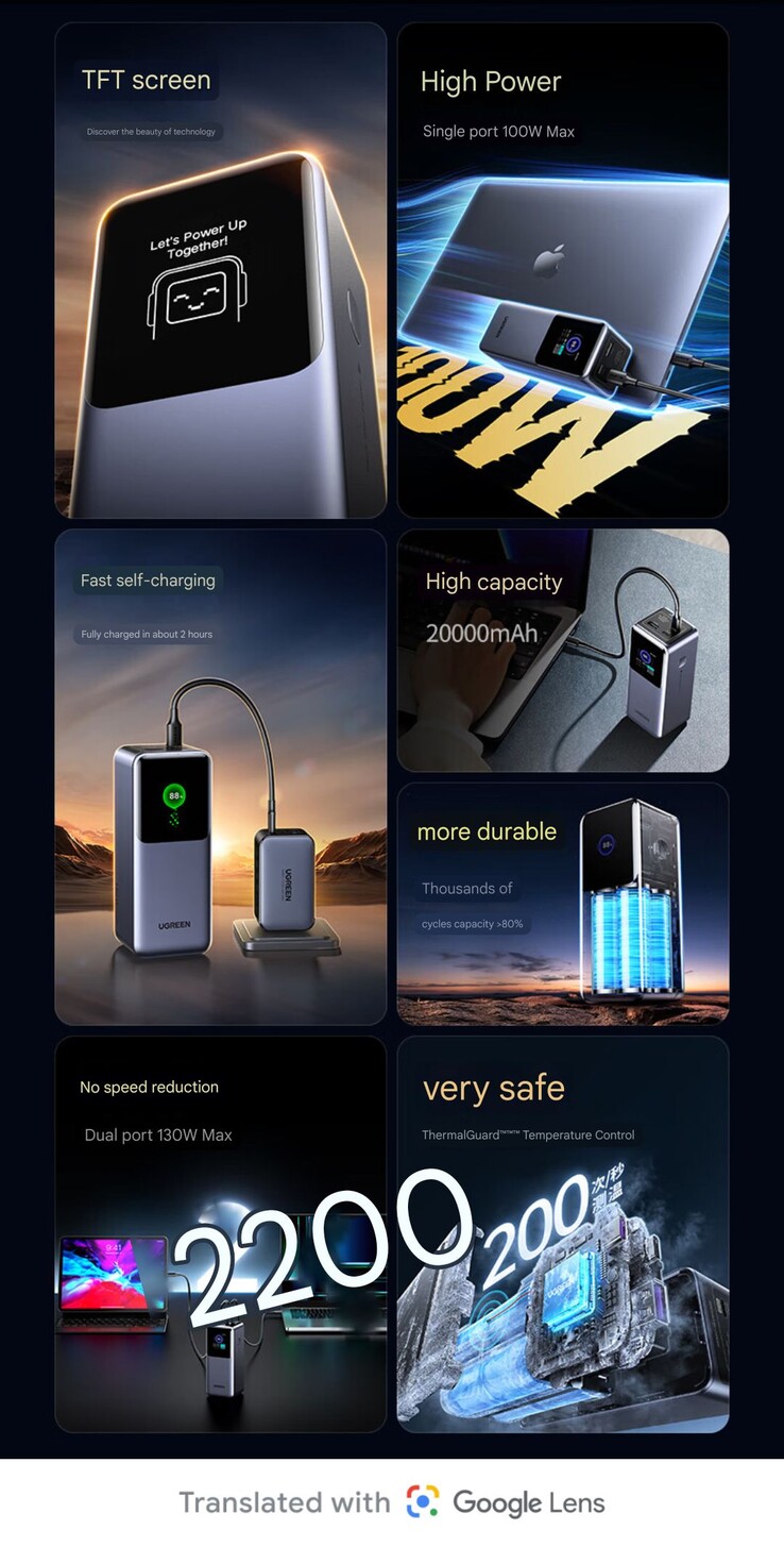 Wat betreft de batterijen in de powerbank, zegt UGREEN dat deze van autokwaliteit en meer dan 80% van de capaciteit kunnen behouden, zelfs na 1000 laad- en ontlaadcycli.