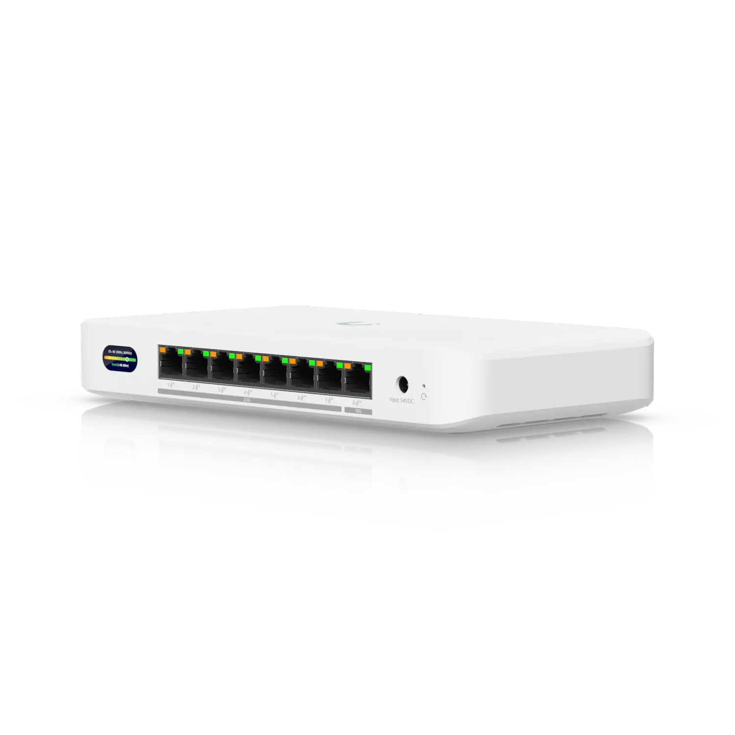 De switch heeft zelf 25 watt stroom nodig, maar levert ook 185 watt aan aangesloten apparaten met voeding. Deze kunnen worden aangesloten op acht RJ45-poorten. PoE+ (ook bekend als IEEE 802.3at) met maximaal 30 watt is ook beschikbaar. Opgemerkt moet worden dat Ubiquiti slechts een 60 watt voeding bij de switch levert, waardoor het stroombudget slechts 35 watt bedraagt. Gebruikers die meer nodig hebben, moeten de optionele voeding van 210 watt bestellen.