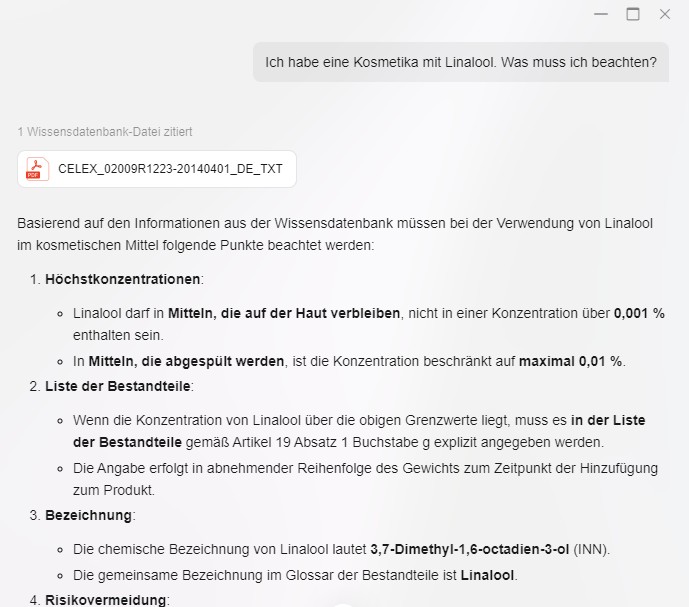 We hebben de kennisdatabank getest met behulp van een procedure die we zelf hebben ontwikkeld. Concreet gaat het om het doorzoeken van in totaal 100 PDF-bestanden van 31,4 MB, waarin bepaalde stukjes informatie over een persoon verborgen zijn, zowel direct als indirect. Dit maakt het mogelijk om te controleren of er überhaupt informatie kan worden gevonden en of deze duidelijk kan worden onderscheiden. Er wordt ook getest of het systeem, simpel gezegd, buiten de gebaande paden kan denken. Bovendien kunnen hallucinaties worden geïdentificeerd omdat we een volledige lijst hebben van alle informatie die we hebben ingevoegd. In onze test duurde het analyseren van de documenten ongeveer 35 minuten en kon het op de achtergrond worden uitgevoerd. Deze taken zijn echter niet geïntegreerd in het taakcentrum, dus gebruikers krijgen geen melding wanneer de analyse is voltooid.