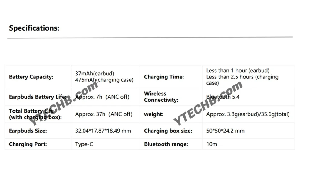 Met ANC uitgeschakeld zullen de oordopjes naar verluidt tot 7 uur speelduur bieden, terwijl de totale gebruiksduur met de behuizing 37 uur zal bedragen. Dit uitgelekte specificatieblad suggereert ook dat het niet lang duurt voordat de oordopjes volledig zijn opgeladen. Net als de Redmi Buds 8 Lite wordt de Active naar verwachting geleverd met Bluetooth 5.4, maar er wordt geen melding gemaakt van een bluetooth-codec met hoge resolutie ondersteuning.