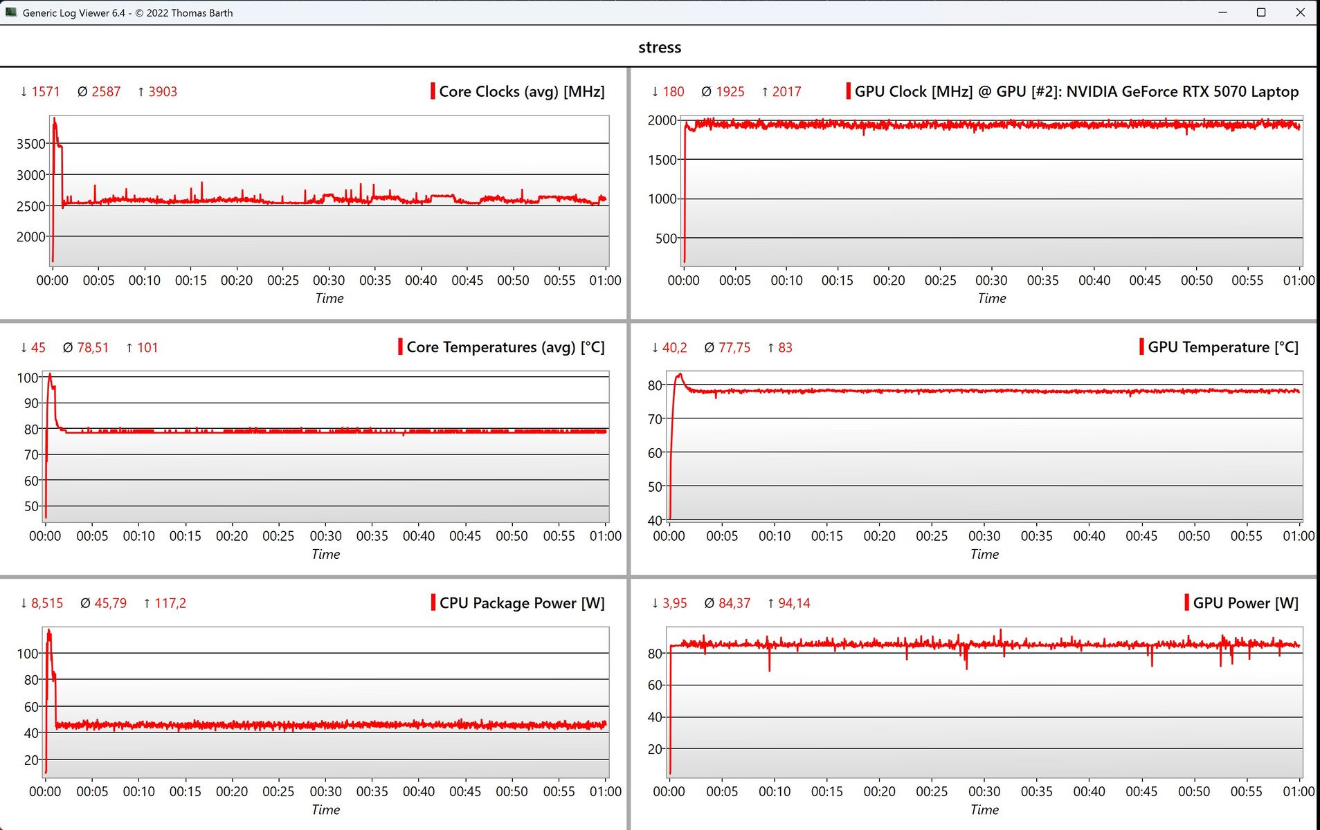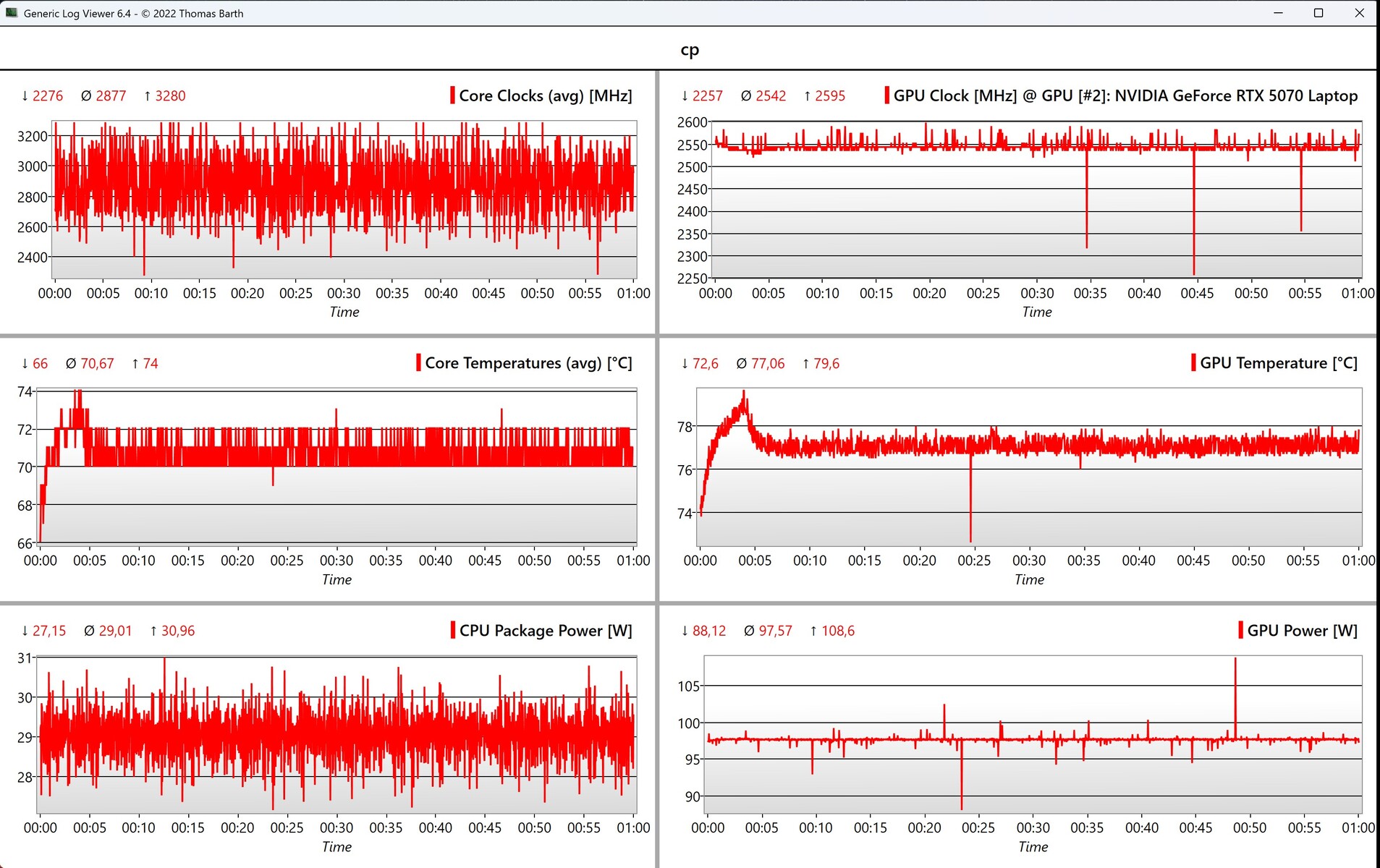 De optionele Core Ultra 9 285H is niet echt de moeite waard in vergelijking met de Core Ultra 7 255H, omdat er slechts een zeer klein voordeel is in single-core scenario's. De mobiele GeForce RTX 5070 is ongeveer 10-15% sneller dan de RTX 5060 en kan lonend zijn als u de hoogste GPU-prestaties wilt. We zien hier echter ook een gemiste kans om nog snellere GPU's te installeren. Asus brengt binnenkort de ProArt P16 in een snellere versie (maximale RTX 5090 laptop, ook tandem OLED) en zal waarschijnlijk gemakkelijk de prestatiekroon in het segment van de multimedia-laptops veroveren.