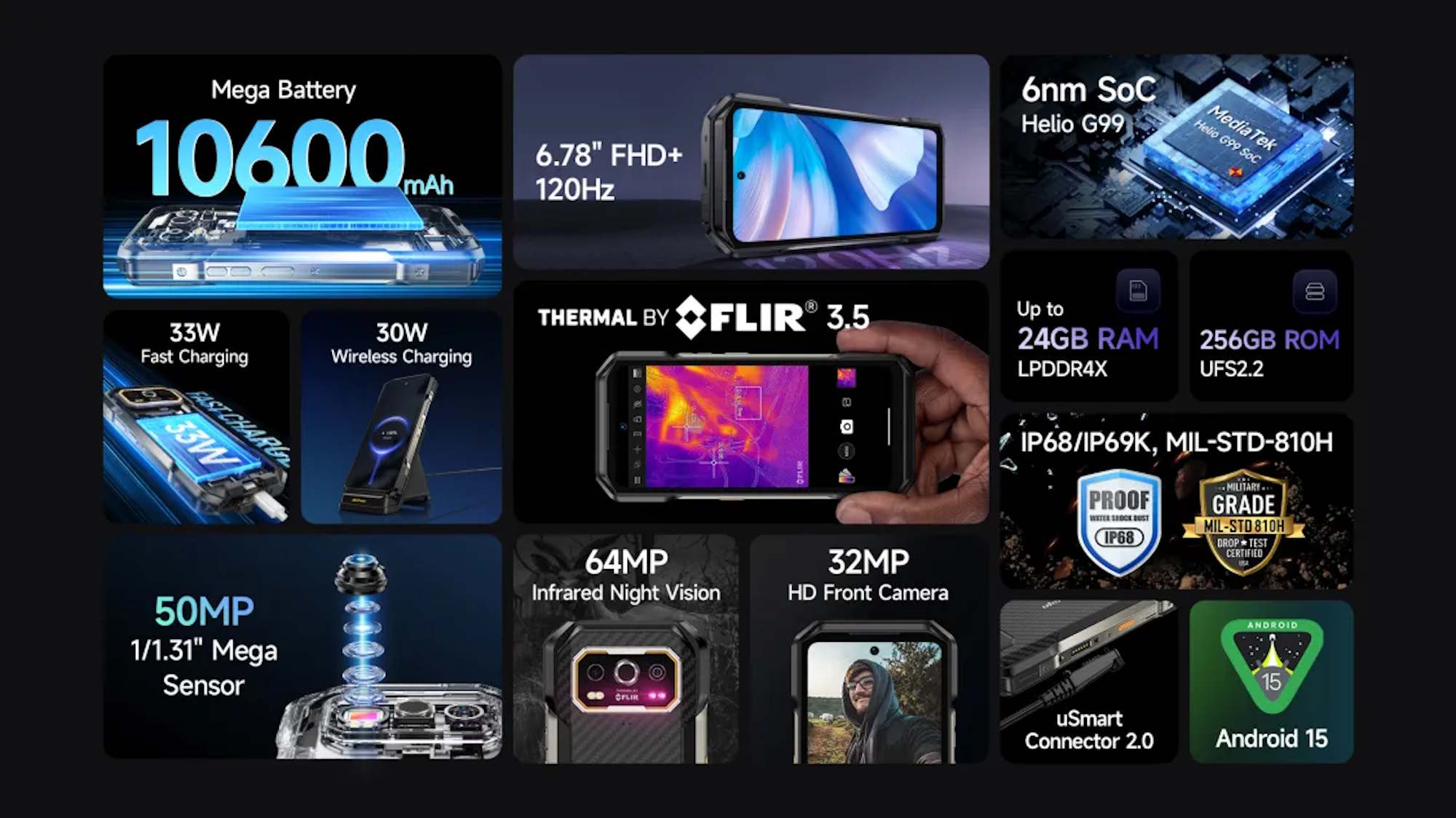 Ulefone maakt verder reclame voor FLIR-technologie versie 3.5 in plaats van 2.5. Dit is een camerasysteem voor het vastleggen van warmtebeelden met een resolutie van 80 x 60 pixels. Volgens de fabrikant kan deze camera temperatuurverschillen tot 50 millikelvin onderscheiden. Hoe dan ook, de metingen kunnen ongeveer 3°C afwijken, dus gebruikers moeten zich bewust zijn van de beperkingen van contactloze temperatuurmeting. Beide smartphones zijn ook uitgerust met een 50MP hoofdcamera en een nachtzichtcamera.