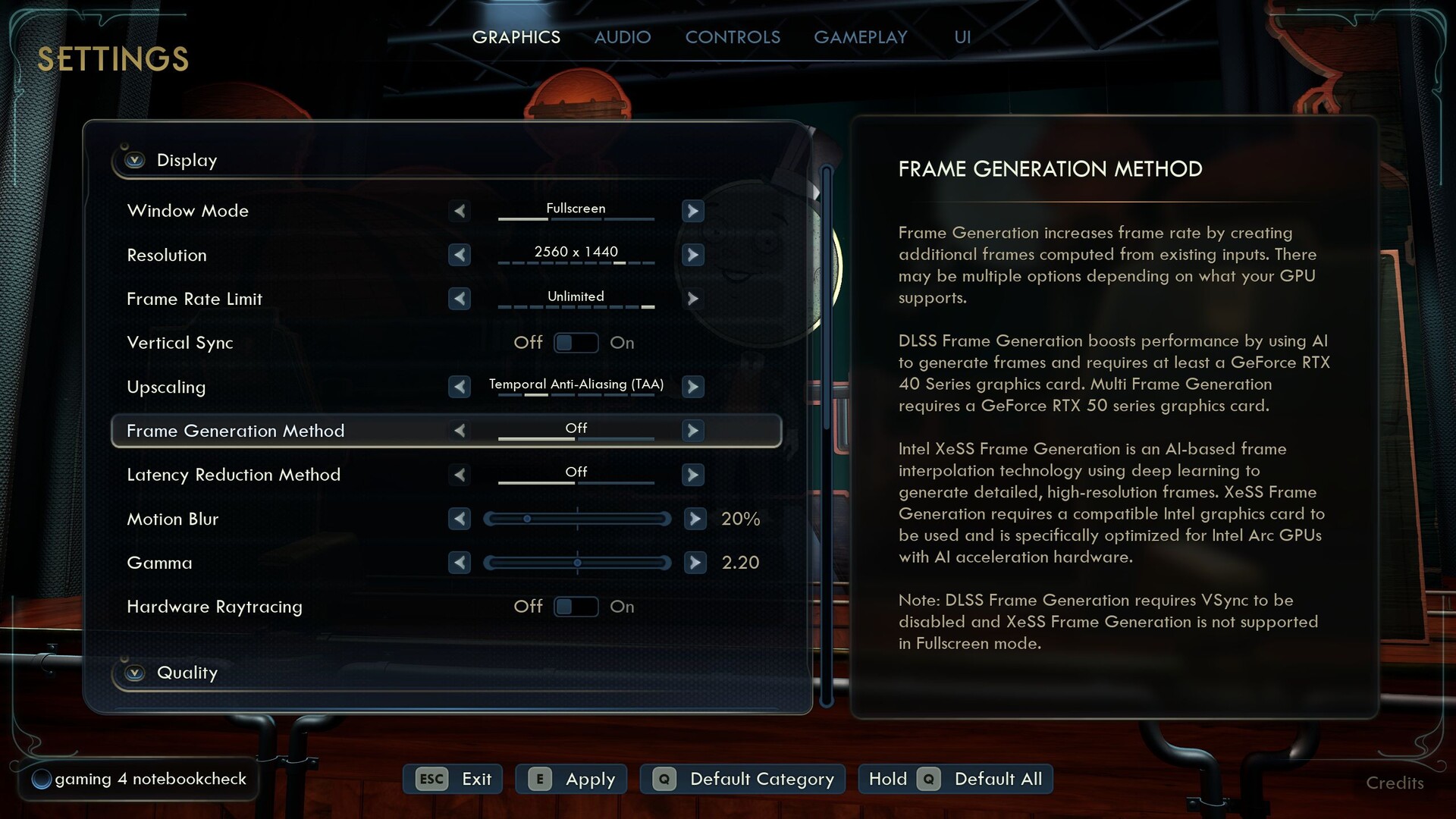 Het grafische menu in de PC-versie is indrukwekkend uitgebreid, wat zowel prestatie-tweakers als visuele enthousiastelingen zal plezieren. The Outer Worlds 2 zit boordevol moderne functies, waaronder upscaling-opties zoals TSR, XeSS, FSR en DLSS - met ondersteuning voor Multi-Frame Generation op compatibele GPU's. Hardware-gebaseerde ray tracing is ook beschikbaar als optionele functie. Dankzij verschillende voorinstellingen kunnen spelers alle instellingen in het gedeelte "Graphics" eenvoudig aanpassen, en wijzigingen worden direct van kracht zonder dat ze opnieuw hoeven te worden opgestart.