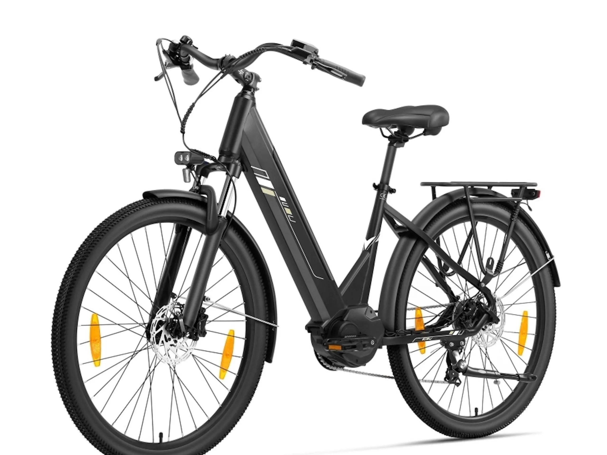 Er is een verende voorvork met blokkeerfunctie en een veerweg van 80 millimeter gemonteerd. Er is een derailleurversnellingssysteem met zeven versnellingen, waarmee fietsers ook zonder motor comfortabel hellingen zouden moeten kunnen nemen. Voor afdalingen en vaak stoppen beloven de hydraulische schijfremmen een krachtige vertraging. De fiets weegt een stevige 32 kilogram, maar wordt geleverd met een uitgebreide uitrusting, waaronder spatborden, een kickstand en een bagagedrager. Er zit ook verlichting op de voor- en achterkant, zodat de fiets 's nachts veilig en legaal gebruikt kan worden
