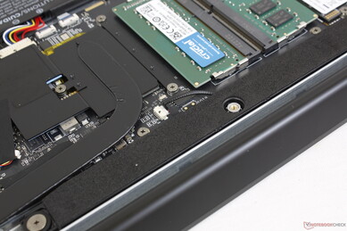 Het bodempaneel wordt vastgezet met 15 Philips-schroeven. Hoewel de schroeven zelf gemakkelijk te verwijderen zijn, is het paneel eigenlijk erg moeilijk, omdat een van de hoeken ervan gemakkelijk vast kan komen te zitten aan de RJ-45 poort. Het is een slecht ontwerp dat eenvoudige upgrades zoals RAM of opslag veel moeilijker maakt dan het zou moeten zijn.
