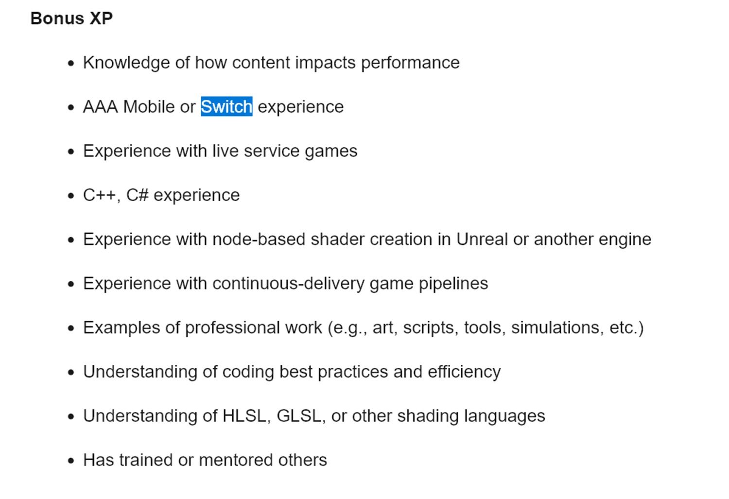 De studio heeft verschillende titels in de serie ontwikkeld, waaronder Call of Duty: Modern Warfare 3. Zoals ontdekt door Clawsomegameris de vacature te vinden op de Activision Careers-site. In het gedeelte onder de vereisten zou betrokkenheid bij de Switch in het verleden bonuspunten opleveren.