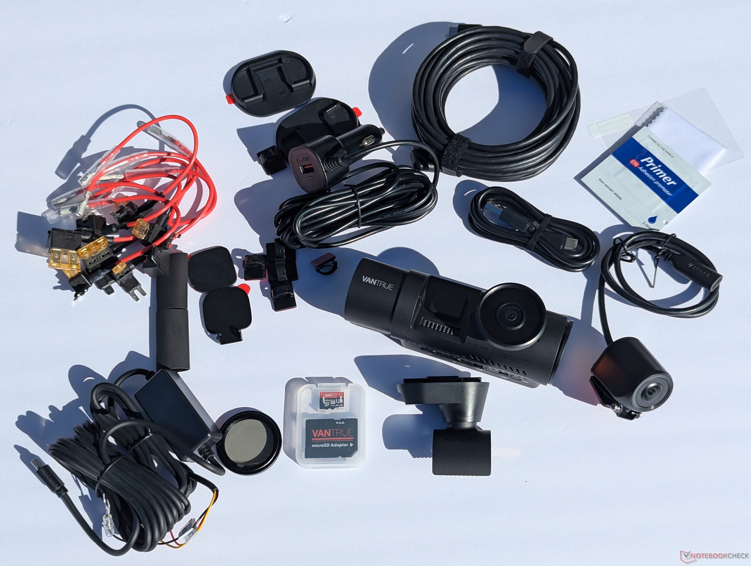 Voor deze beoordeling leverde Vantrue de N4 Pro S, een hardwire-kit, een CPL Lens en een Vantrue SD-kaart. Alles werd goed verpakt geleverd, inclusief alle benodigdheden voor een volledige hardwire-installatie. Gelukkig ontdekte ik bij het uitpakken van de hardwire kit dat Vantrue meerdere zekeringenparen in de doos had meegeleverd. Dit maakte het aftappen in de zekeringkast veel gemakkelijker, omdat er aftakkingen beschikbaar waren voor zowel batterijvoeding als ACC-voeding zonder dat u draden hoefde te strippen of door te knippen. Nadat alles was aangesloten en de camera op stroom was getest, werd de kabel in positie gebracht om de primaire en externe achtercamera's van stroom te voorzien.