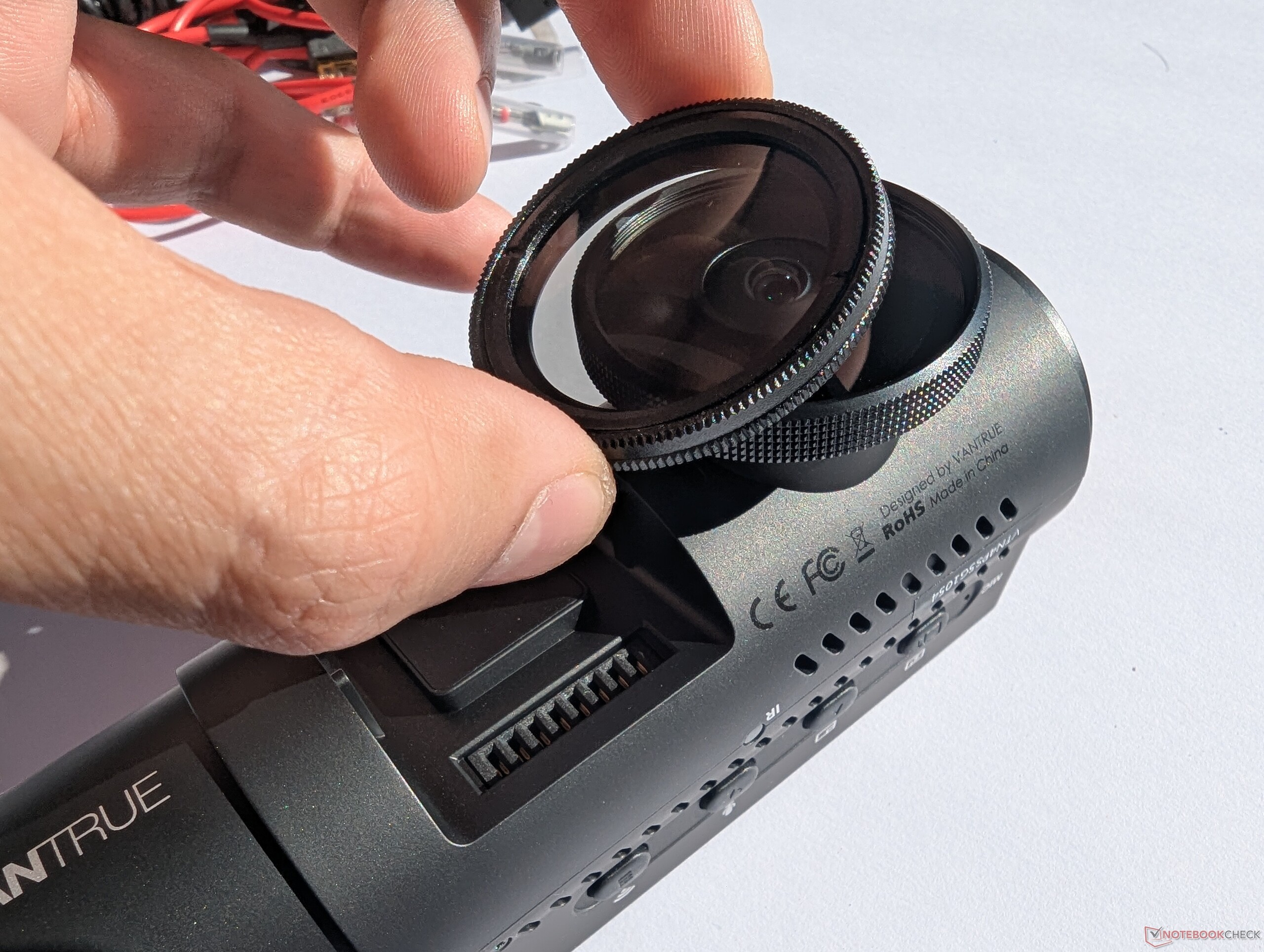 De installatie van de drie camera's is eenvoudig en Vantrue levert een paar transparante stickers om ervoor te zorgen dat de camera's goed op de voorruit passen. Voordat de camera werd bevestigd, werd echter het circulaire polarisatiefilter op de primaire camera geschroefd. Het positioneren van de camera's is ook eenvoudig, dankzij de kogelbevestiging die voor de nodige rotatie zorgt. Gebruikers moeten echter voorzichtig zijn met de achterste camera, omdat de spanschroeven gemakkelijk loskomen als ze te strak worden aangedraaid. Verder was de kabel meer dan genoeg om de hoofdcamera met de achteruitrijcamera te verbinden, en de testauto had uitsparingen om de kabel naar buiten door te voeren. Tot slot is de bootinstallatie ook snel, en de camera maakte zonder problemen verbinding met de Vantrue app via WiFi. Hoewel algemeen wordt aangenomen dat 2,4 GHz WiFi langzamer is dan 5 GHz, is de videostream van de camera over de 2,4 GHz verbinding pijnlijk langzaam en loopt vaak vast. Dit is op de lange termijn geen groot probleem, vooral omdat de dashcam 5 GHz ondersteunt en een ingebouwd scherm heeft, maar gebruikers zullen merken dat de functie grotendeels onbruikbaar is.