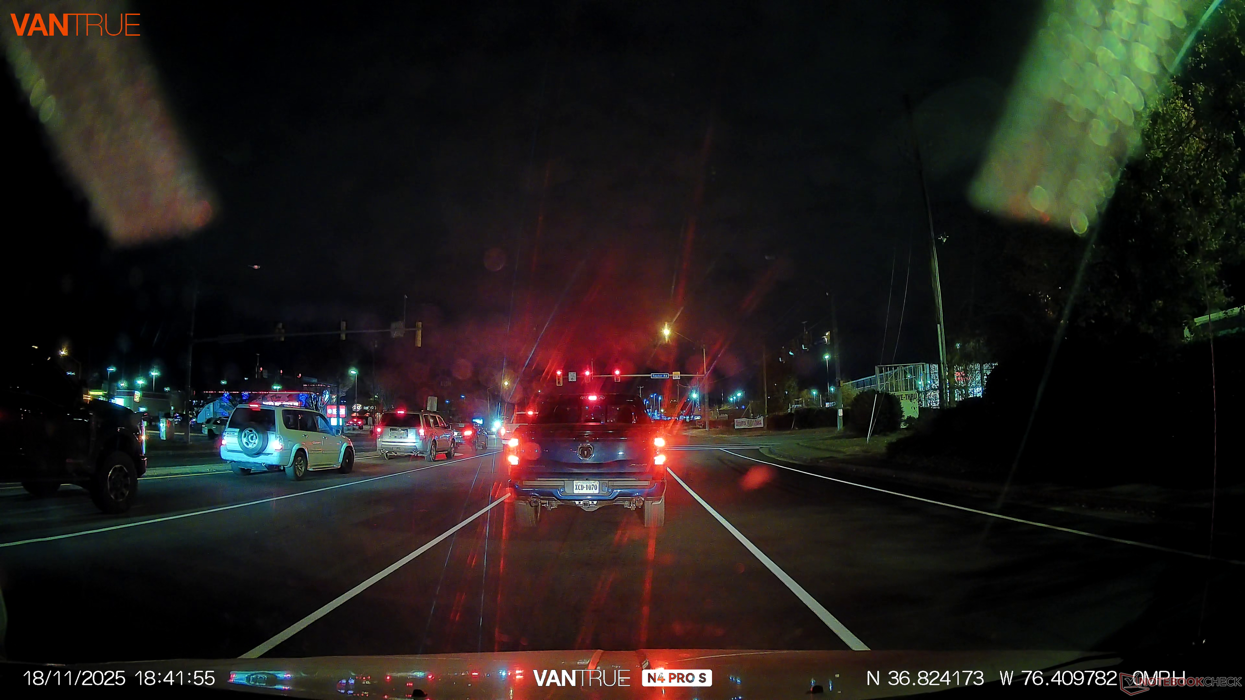 Zowel overdag als 's nachts produceerde de Vantrue consistent heldere video's zonder hiaten, en kleuren werden geaccentueerd door het CPL-filter. en opgenomen zonder haperingen. Zoals verwacht boden de sensoren van de Starvis 2 een uitzonderlijk nachtzicht buiten, waarbij zelfs in omgevingen met weinig licht details werden vastgelegd, en omdat de achtercamera zich aan de buitenkant van het voertuig bevindt, waren er geen glasreflecties die de beelden vertroebelden. Met de standaardinstellingen traceerden de camera en de sensoren nauwkeurig de locatie van de testauto. Er werd echter opgemerkt dat de standaardinstellingen iets gevoeliger leken op dit model, waardoor event-opnames van kleine hobbels vaker dan verwacht werden geactiveerd. Wie minder meldingen wil, kan de gevoeligheid van de G-sensor aanpassen in de instellingen. De instellingen bevatten ook veel opties, en gebruikers met de hardwire kit kunnen profiteren van functies zoals bewegingsdetectie en actieve bewaking. Er moet ook opgemerkt worden dat de hardwire kit de batterij van de testauto niet leeg trok en geen problemen veroorzaakte tijdens het opstarten.