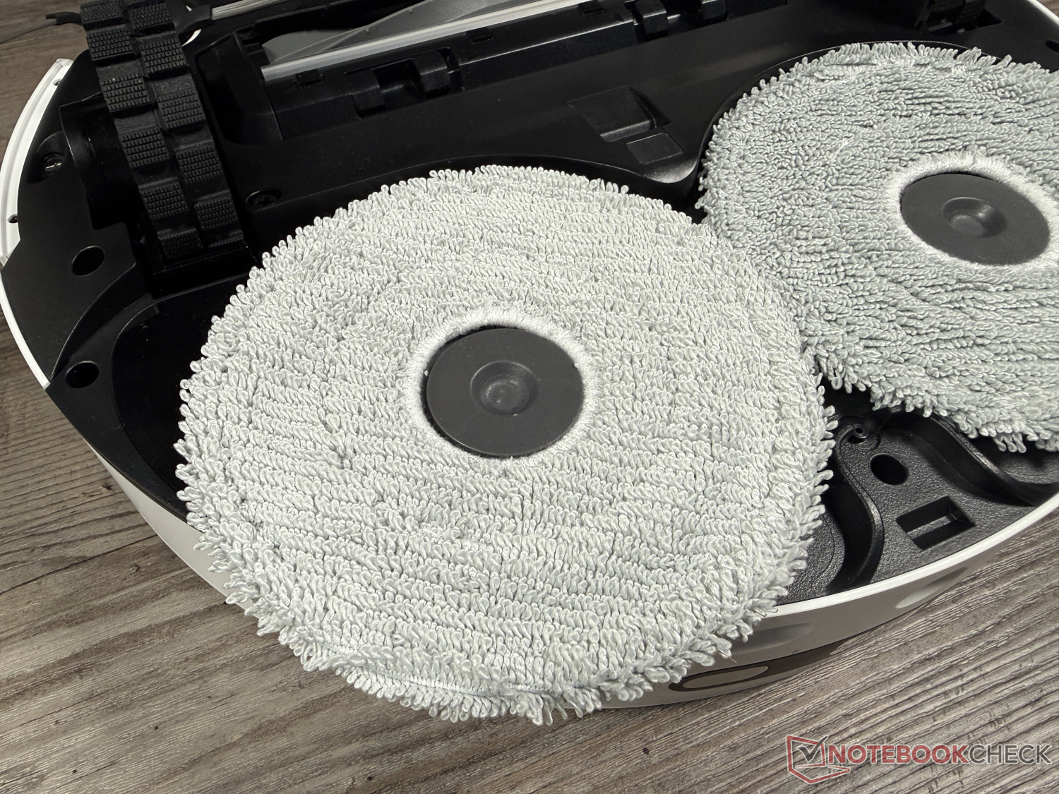 Dit is gedeeltelijk te wijten aan het feit dat de moppen niet met warm water worden gereinigd. Desondanks werden de moppen over het algemeen grondig gereinigd tijdens onze dagelijkse tests. Het schoonmaakstation bereikte alleen zijn grenzen bij grovere vervuiling. Indien nodig kunnen de mops in de wasmachine gereinigd worden.