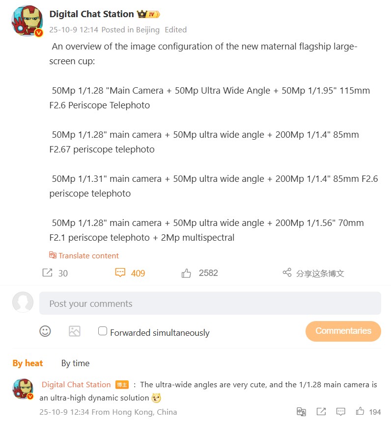 Het mysterie is echter vrij eenvoudig op te lossen als we de lekken van de afgelopen weken bekijken. Eén ding waar geen rekening mee wordt gehouden in de vergelijking van de specificaties is de 50 MP ultra-groothoeklens, die in alle gevallen erg "schattig" is, zoals in een commentaar wordt opgemerkt. Natuurlijk wordt er ook geen rekening gehouden met de individuele stijl van de foto's, die nu sterk beïnvloed wordt door de camerapartners van Xiaomi, Vivo, Oppo en binnenkort Realmenamelijk Leica, Zeiss, Hasselblad en Ricoh GR. Iedereen die de specs wil vergelijken met de camera vlaggenschepen zelf heeft nog steeds de mogelijkheid om dat te doen voordat we hieronder het screenshot uitleggen