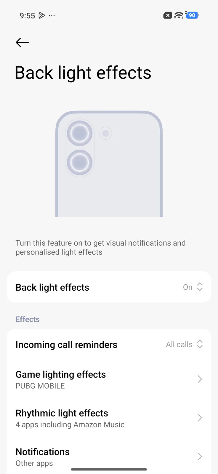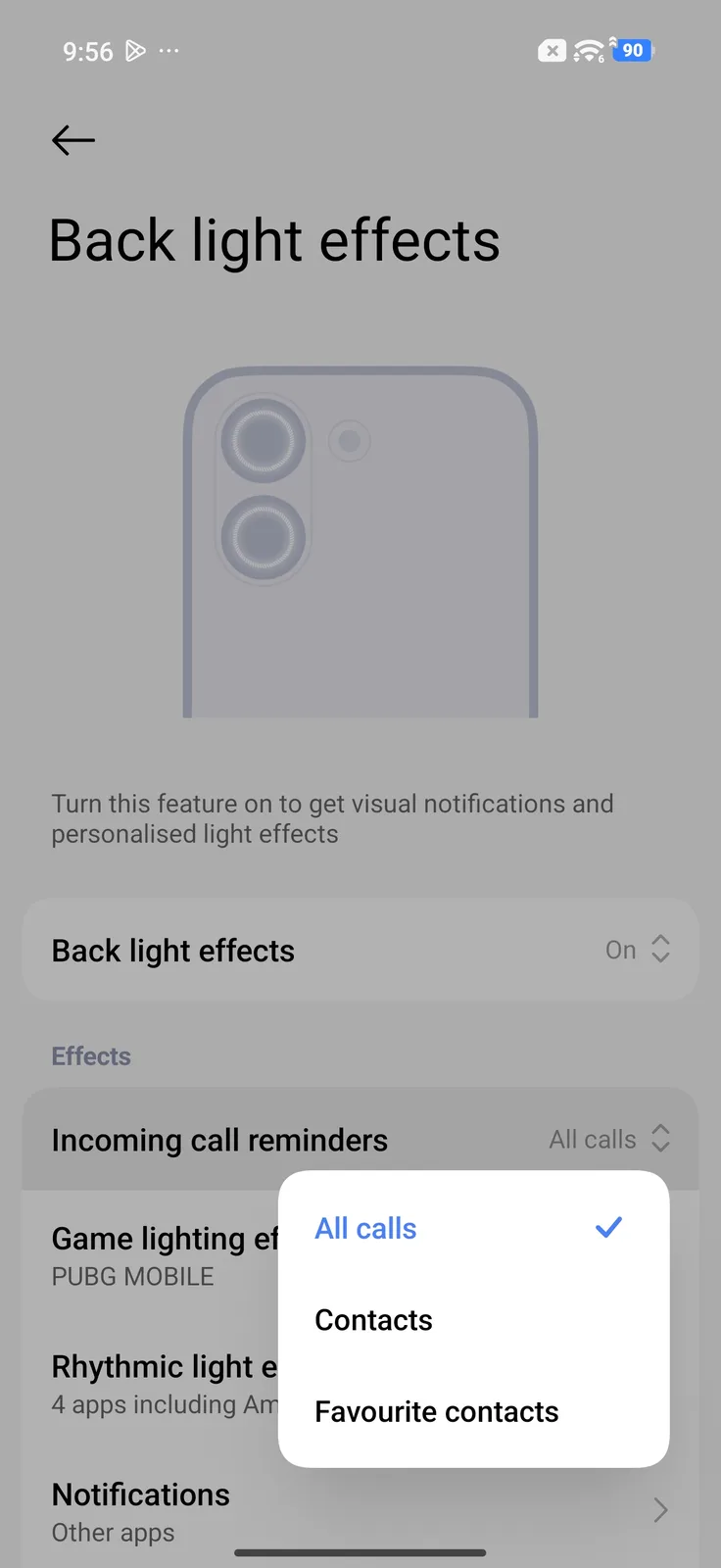Het instellingenmenu biedt talloze opties om specifieke lichtanimaties aan bepaalde apps of contacten toe te wijzen.