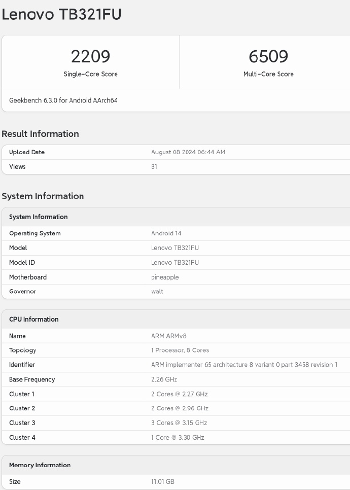 Zoals gedeeld door leaker Digital Chat Station op Weibo, behaalde de Lenovo Legion Y700 (2024) een single-core score van 2209 en een multi-core score van 6509 op de Geekbench 6.3 listing. Deze cijfers komen overeen met onze testresultaten voor de Snapdragon 8 Gen 3 op een groot aantal apparaten, waarbij de vermelde kernconfiguratie ook de aanwezigheid van het vlaggenschip SoC van Qualcomm bevestigt.