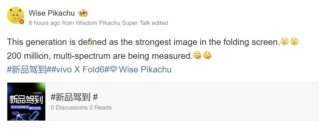 Bovendien suggereert leaker Smart Pikachu dat Vivo de X Fold6 ook heeft ontwikkeld met een 200 MP camera en een multispectrale sensor om de kleurnauwkeurigheid te maximaliseren. Of deze 200 MP-sensor zijn weg vindt naar een primaire of telecamera die op Zeiss is afgestemd, blijft op dit moment echter onduidelijk. Er zijn ook geen aanwijzingen dat de X Fold6 net als de Find N6 wereldwijd verkrijgbaar zal zijn.