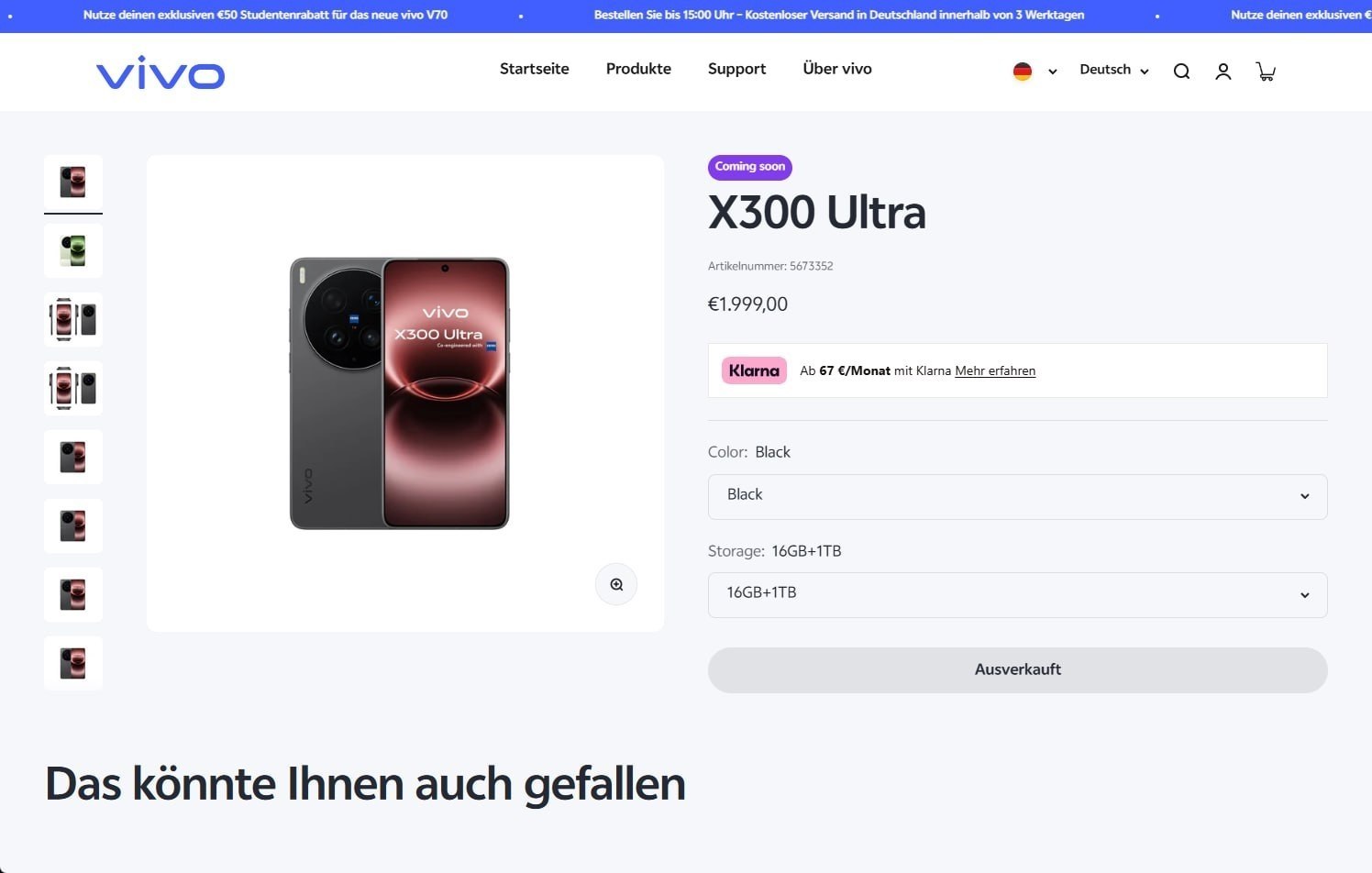 Er is ook meer gedetailleerde informatie beschikbaar, met name wat de officieel geplande Euro-prijs voor Oostenrijk en Duitsland lijkt te zijn. De officiële Vivo winkel voor Oostenrijk, Duitsland en Hongarije, die al bestaat sinds de lancering van de Vivo X300 Prolijkt de Vivo X300 Ultra al te hebben vermeld, althans op basis van screenshots die online circuleren. Bij navraag waren die vermeldingen niet meer beschikbaar, dus het lek kan niet direct bevestigd worden, hoewel de screenshots zeer authentiek lijken.