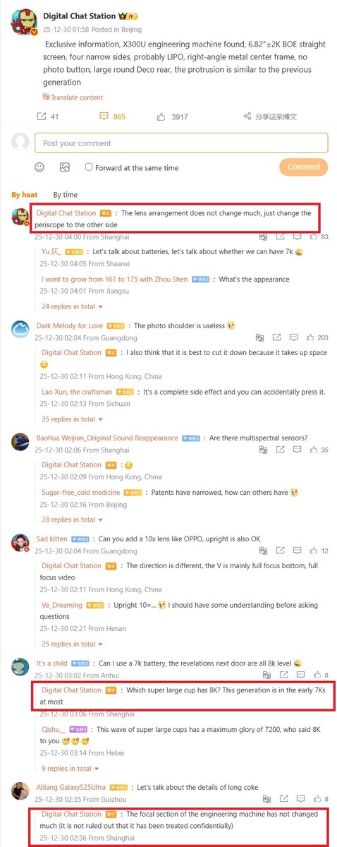 Naast dit goede nieuws uit de EEC-databases heeft de zeer betrouwbare leaker Digital Chat Station ook een paar extra specs over de Vivo X300 Ultra. Zoals we eerder berichttenheeft het een plat 6,82 inch OLED-scherm van BOE met slanke randen en een plat metalen frame, maar blijkbaar heeft het geen speciale ontspanknop voor de camera meer. Voor sommige gebruikers zou dit zeker een grote achteruitgang zijn ten opzichte van de Vivo X200 Ultra. Vivo neemt hier mogelijk een voorbeeld aan Xiaomi, aangezien de Xiaomi 17 Ultra Leica Edition geen ontspanknop heeft, omdat Xiaomi in plaats daarvan optionele accessoires wil verkopen.