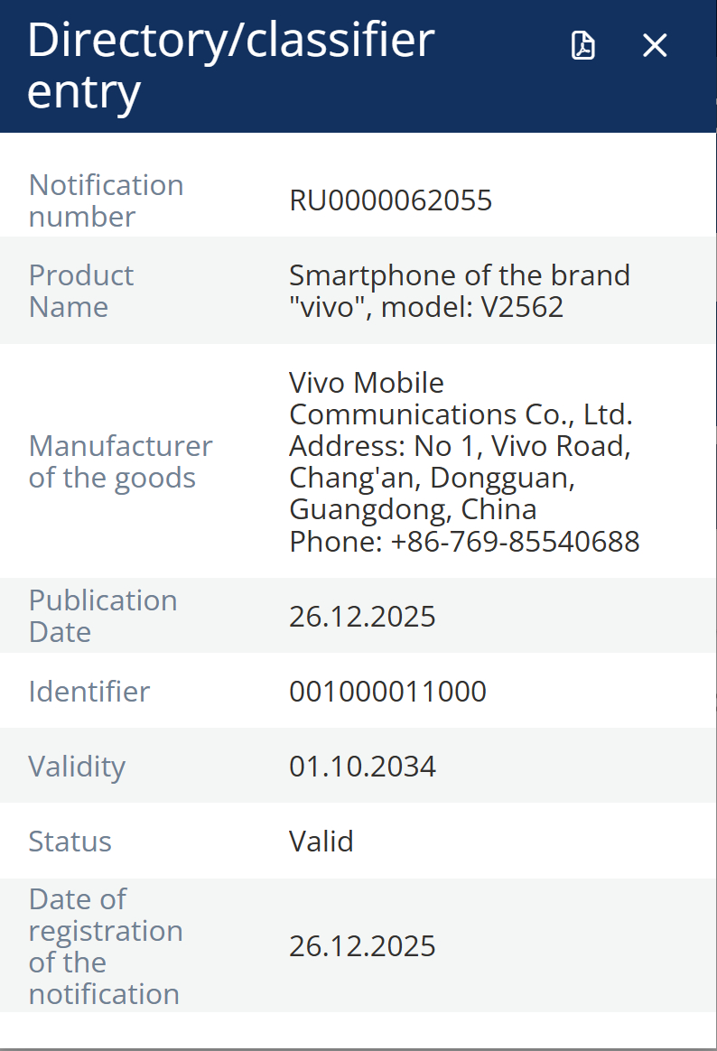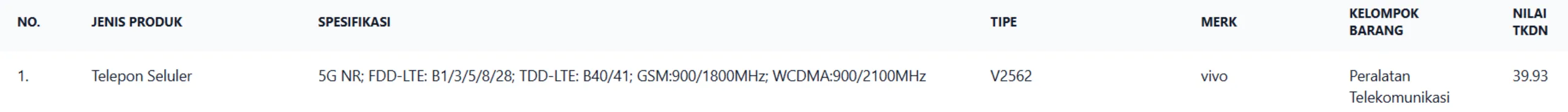 Net na Kerstmis heeft Vivo een smartphone met het modelnummer V2562 gecertificeerd bij de Euraziatische Economische Commissie (EEG). Vaak is een EEG-certificering door een grote fabrikant een duidelijk teken dat ze een toestel zullen uitbrengen in plaats van het op de werkvloer te laten liggen. Nu is hetzelfde apparaat opgedoken in de openbare database van TKDN in Indonesië.