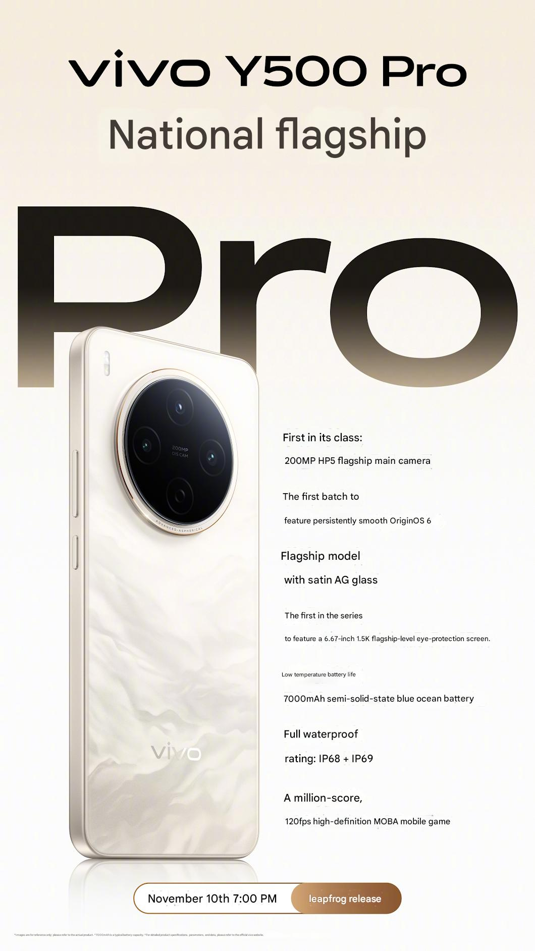 Vivo presenteert het toestel op maandag 10 november. In de aanloop naar de officiële lancering heeft Vivo bevestigd dat de Y500 Pro hardware zoals een 7.000 mAh batterij en een 200 MP primaire camera zal combineren. Ter referentie: de genoemde ISOCELL HP5 is al te vinden in de Galaxy S25 Edge (momenteel $644,99 op Amazon).