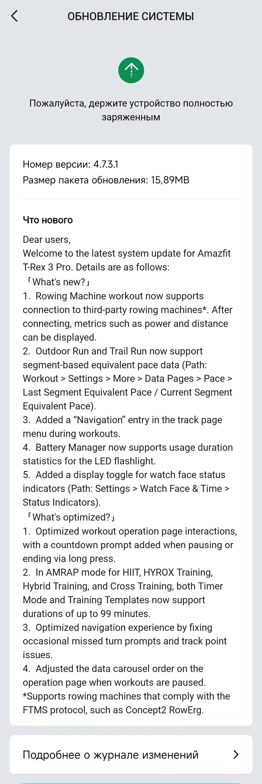 Met firmwareversie 4.7.3.1 kunnen gebruikers van de T-Rex 3 Pro nu een FTMS-compatibele roeimachine van derden aansluiten op de smartwatch om kracht- en afstandmetingen te verzamelen tijdens roeimachinetrainingen. Voor Outdoor Run en Trail Run activiteiten kunt u nu gelijkwaardige tempo-gegevens per segment bekijken. Op het menu van de trackpagina halverwege de training is er een nieuwe navigatiesectie. Bovendien kan de Battery Manager van de Amazfit smartwatch nu gegevens weergeven die gekoppeld zijn aan de geïntegreerde LED-zaklamp van de wearable.