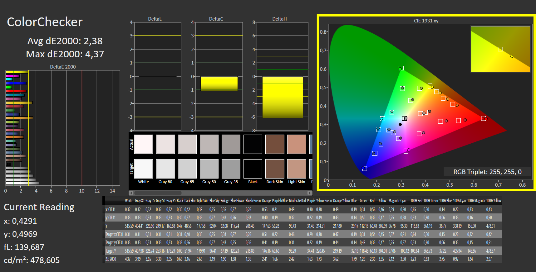 ΔE ColorChecker Calman: 2.38 | ∀{0.5-29.43 Ø4.78}