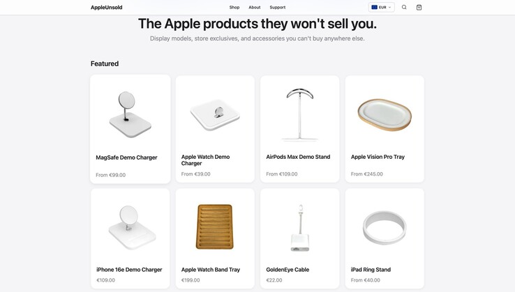 AppleUnsold is een nieuwe online winkel met artikelen die nooit bedoeld waren om aan consumenten verkocht te worden, maar in plaats daarvan gebruikt werden om producten te presenteren in Apple Stores. Verkrijgbaar zijn onder andere de officiële MagSafe-demolader voor iPhones en de tegenhanger voor Apple Watches.