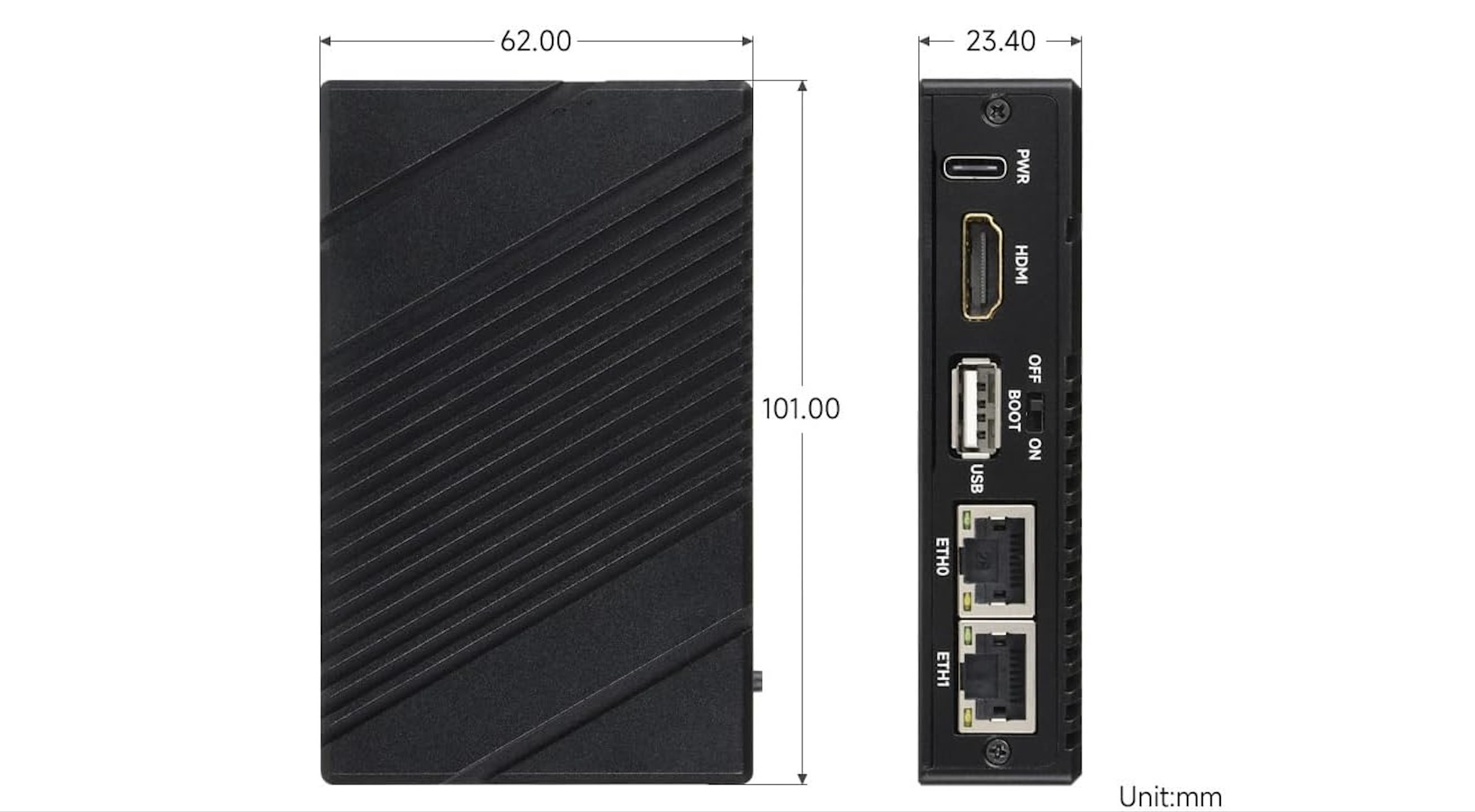 Met slechts 101 x 62 x 23,4 mm of ongeveer 4 x 2,4 x 0,9 inch, is de Waveshare CM5 BOX indrukwekkend compact, wat nauwelijks een verrassing is als u bedenkt hoe compact de CM5 zelf is. Net als elke I/O-dragerboard biedt dit een Raspberry Pi CM5 een overvloed aan invoer- en uitvoeropties. De lijst met details vindt u hieronder: