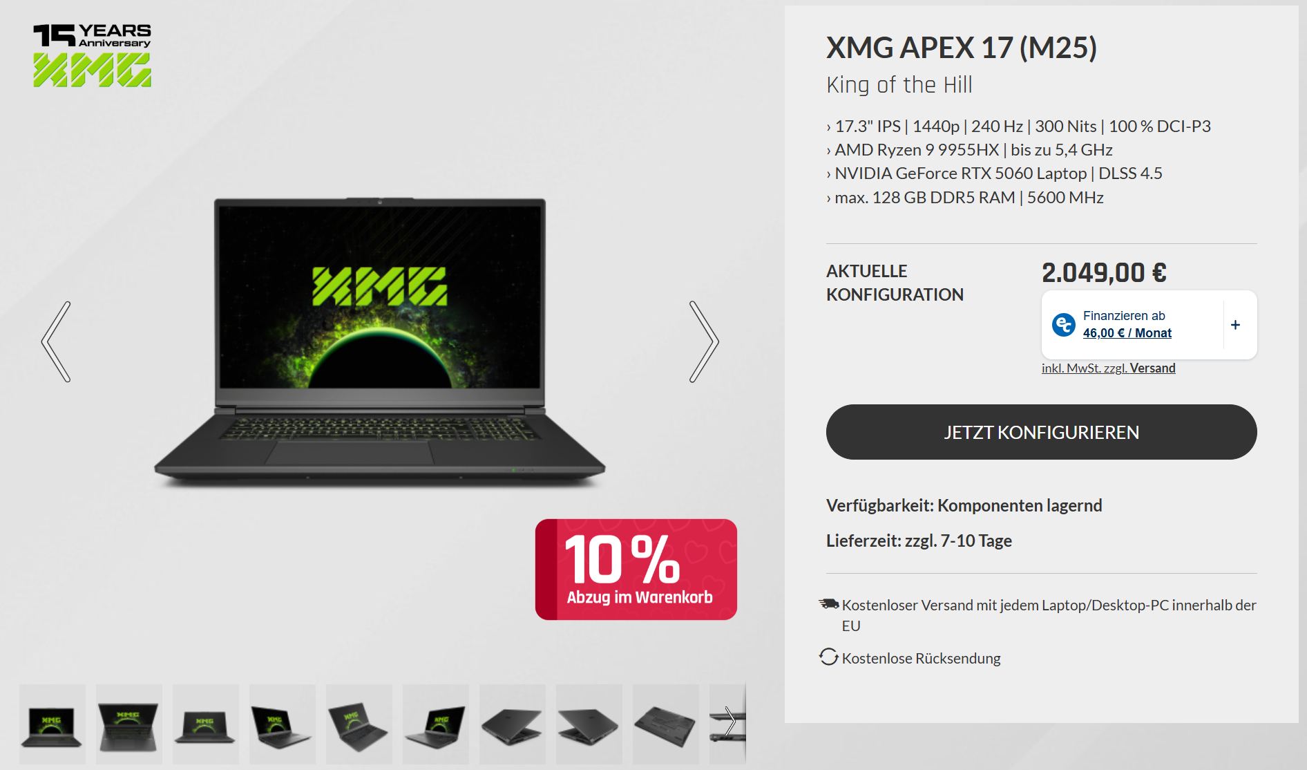 Prijsverhoging voor de XMG Apex 17: RTX 5060 laptop nu vanaf € 2.049