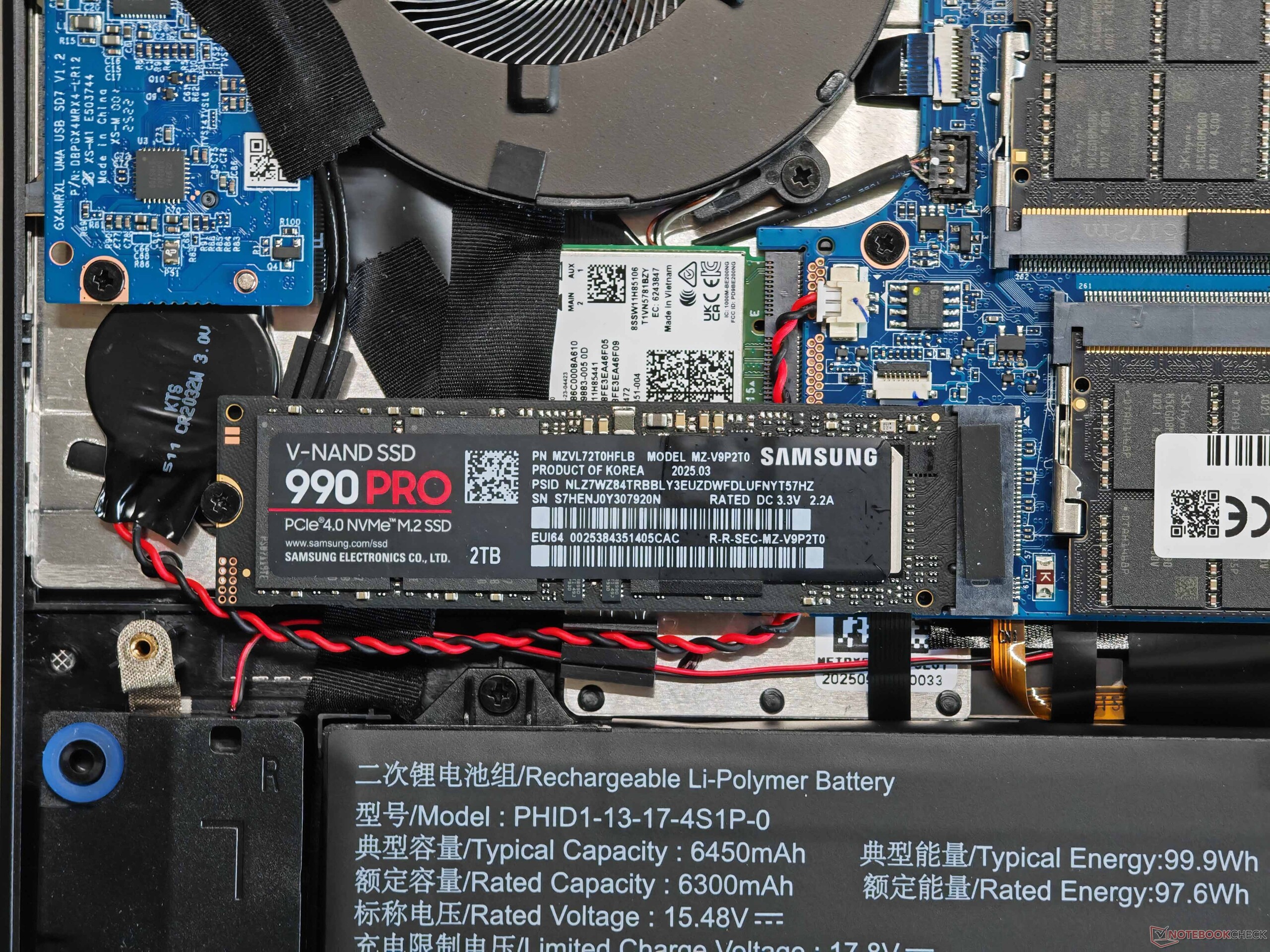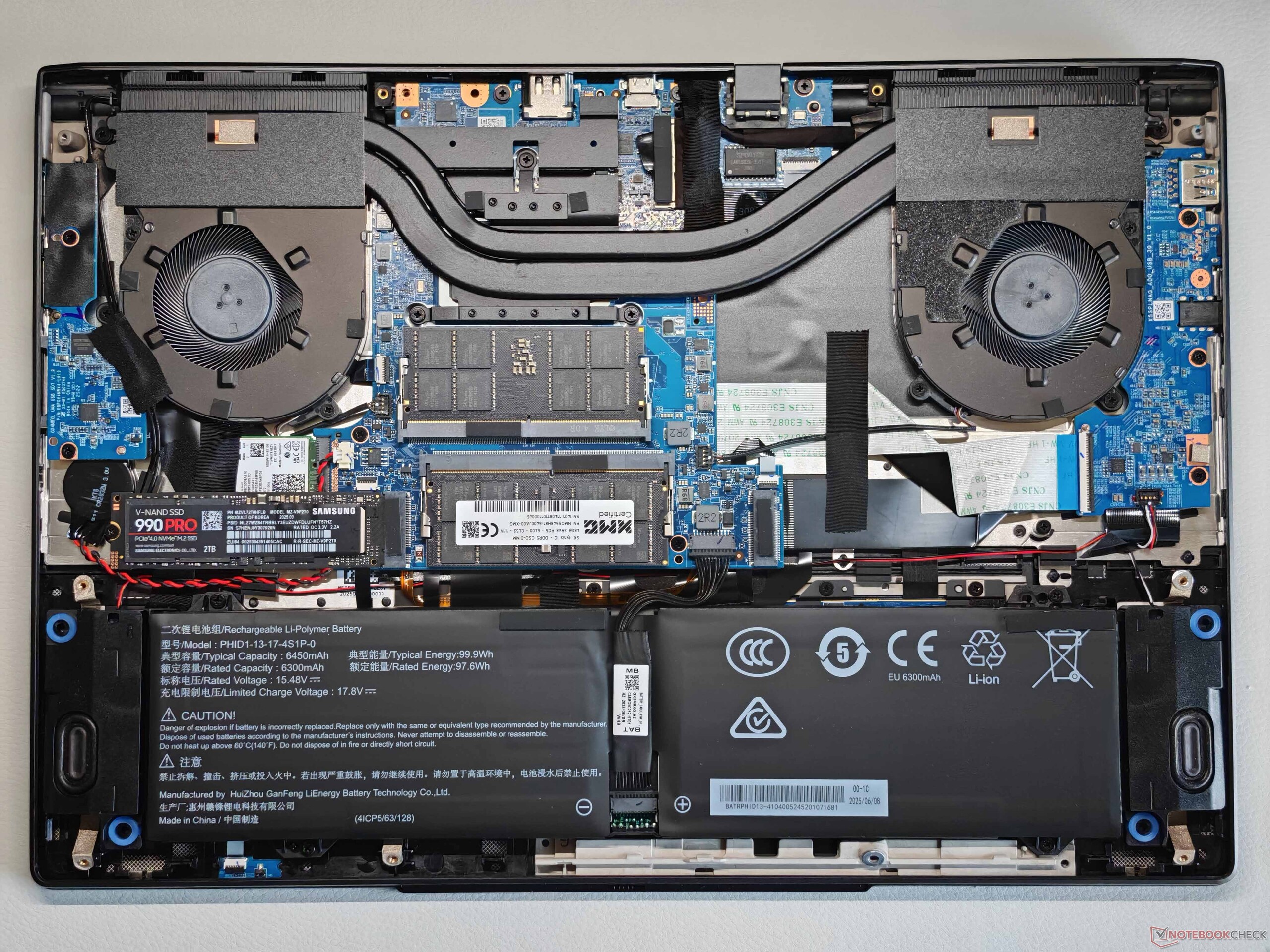 De onderhoudsopties zijn erg goed, met ondersteuning voor twee SO-DIMM slots, twee SSD's en een verwisselbare WLAN module; er is ook een Wi-Fi 7 module beschikbaar. Tijdens onze tests hebben we geen problemen ondervonden met de overdrachtsnelheden. De Evo 15 heeft een groot aantal poorten, waaronder Thunderbolt 4, HDMI en een kaartlezer van volledig formaat. De 1080p webcam (inclusief een privacy shutter en IR-module) is voldoende voor het beoogde doel.