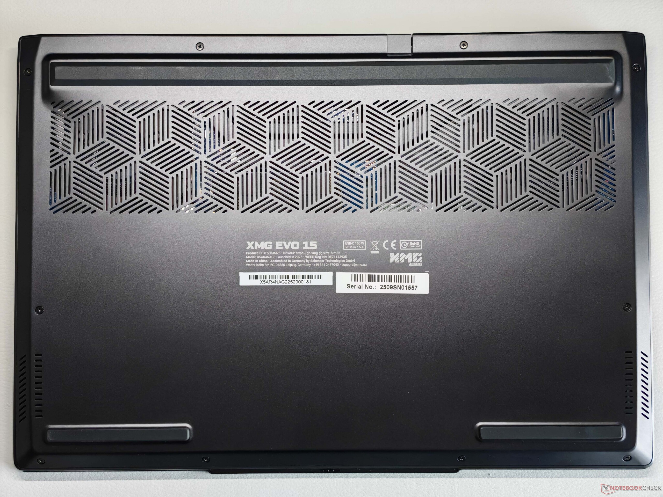 Er zijn geen wijzigingen aan het chassis vergeleken met het model van vorig jaaren de Evo 15 blijft een zeer slanke en hoogwaardige laptop. De zwarte aluminium behuizing is zeer goed gebouwd en stevig, hoewel vingerafdrukken snel zichtbaar worden. De scharnieren (maximale openingshoek) zijn ook goed afgesteld, met slechts een minimale wiebel.