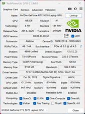 | Schenker XMG FUSION 16 (M25) Ultra 9 275HX, GeForce RTX 5070 Laptop, Samsung 9100 Pro 2 TB, OLED, 2880x1800, 16" | Lenovo Legion Pro 5 16IAX10, RTX 5070 Ultra 7 255HX, GeForce RTX 5070 Laptop, SK Hynix HFS001TEJ9X115N, OLED, 2650x1600, 16" | Schenker XMG Core 16 M25 Ryzen AI 9 HX 370, GeForce RTX 5070 Laptop, Samsung 990 Pro 2 TB MZVL72T0HDLB, IPS, 2560x1600, 16" | Asus TUF Gaming A16 FA608UP R7 260, GeForce RTX 5070 Laptop, Western Digital PC SN5000S SDEQNSJ-1T00, IPS, 2560x1600, 16" | MSI Crosshair 16 HX AI D2XWGKG Ultra 9 275HX, GeForce RTX 5070 Laptop, Micron 2500 1TB MTFDKBA1T0QGN, IPS, 2560x1600, 16" | Aorus Elite 16 AE6H Ultra 9 275HX, GeForce RTX 5070 Laptop, Gigabyte AG470S1TB-SI B10, IPS, 2560x1600, 16" | Gigabyte Gaming A16 GA6H i7-13620H, GeForce RTX 5070 Laptop, Kingston OM8PGP41024Q-A0, IPS, 2560x1600, 16" | Gemiddeld NVIDIA GeForce RTX 5070 Laptop | Gemiddelde van klas Gaming | |