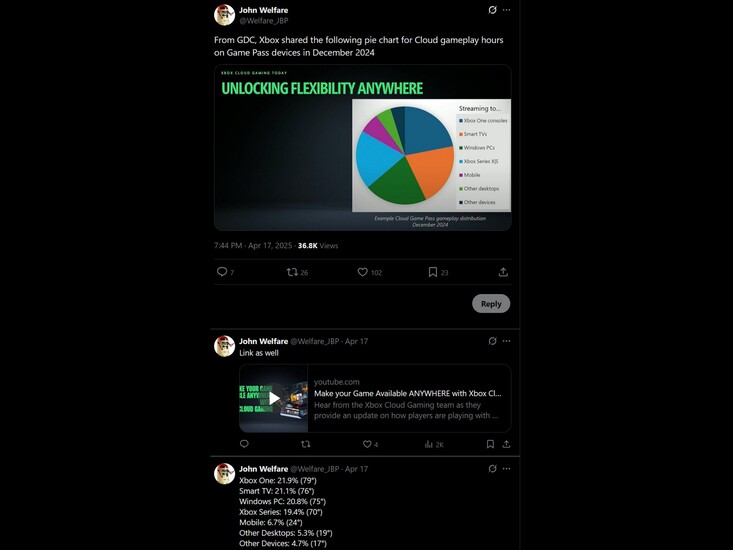 Xbox Cloud Gaming is gegroeid nu Microsoft zich minder richt op hardware en meer op software en abonnementen. Smartphones lijken een perfecte manier om titels te streamen als u niet in de buurt bent van pc's en consoles. De statistieken van van december die op de recente Game Developers Conference werden gedeeld, zouden gamers wel eens kunnen verrassen. Cloud gaming is populairder in huishoudens, aangezien de Xbox One en Smart TV's de meest gebruikte apparaten zijn met de service.