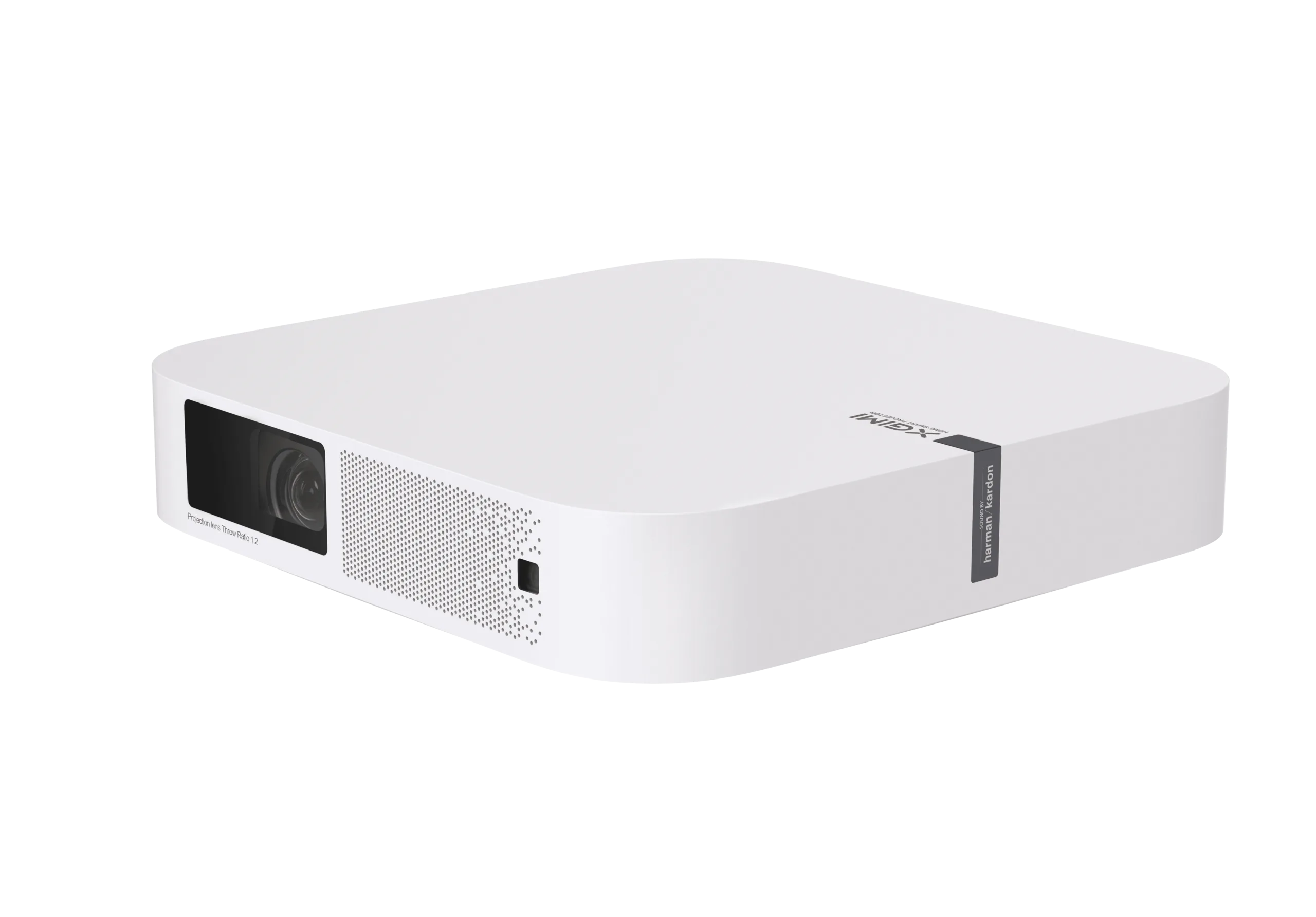 De Elfin heeft een eenvoudige en ingetogen esthetiek. Hij is wit, op de lensbehuizing, het I/O paneel aan de achterkant en een onopvallend Xgimi logo aan de bovenkant na. De matte plastic afwerking verbergt vingerafdrukken en vlekken goed. Het acryl plastic dat de projector lens en camera bedekt vlekt, maar kan gemakkelijk worden schoongemaakt.