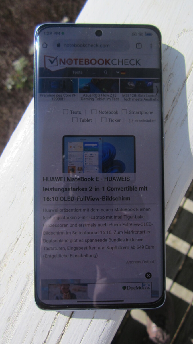 Op papier zou het AMOLED-scherm een piekhelderheid van 1.100 nits moeten halen. Helaas konden we die helderheidsniveaus niet bereiken in onze tests, hoewel we wel heel dicht in de buurt kwamen. In de APL50 test, die een gelijkmatig verdeeld licht-donker patroon bevat, bereikte het een maximum van 1.008 nits, en een iets lagere 908,4 nits bij het weergeven van een volledig wit beeld. Met uitgeschakelde omgevingslichtsensor bereikt het scherm een piek van slechts 506 nits, en de laagst mogelijke helderheidsinstelling is 1,83 nits.