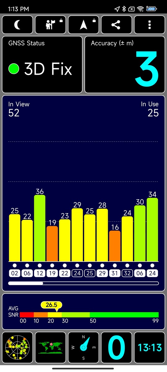 Ondersteunde locatiediensten zijn GPS (L1, L5), Glonass (L1, L5), Galileo (E1, E5a), en Beidou (B1, B1C, B2a). De nauwkeurigheid binnenshuis werd gemeten op 4 m, buitenshuis op 3 m.