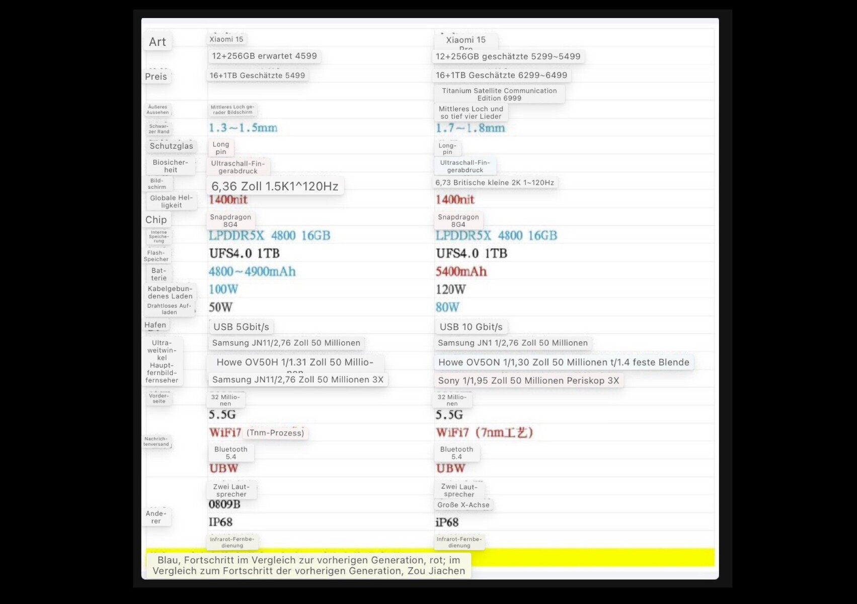 Een leaker heeft een gegevensblad gepubliceerd op het Chinese sociale netwerk Weibo waarin naar verluidt de belangrijkste specificaties van de Xiaomi 15 en de Xiaomi 15 Pro worden onthuld. Hoewel de herkomst van dit gegevensblad niet onafhankelijk geverifieerd kan worden, komen veel van de genoemde specificaties overeen met vorige geruchten.