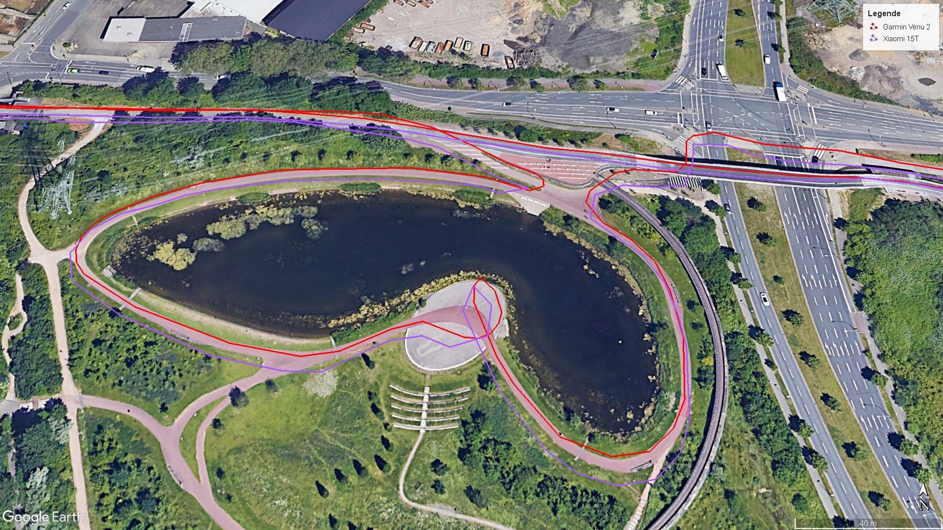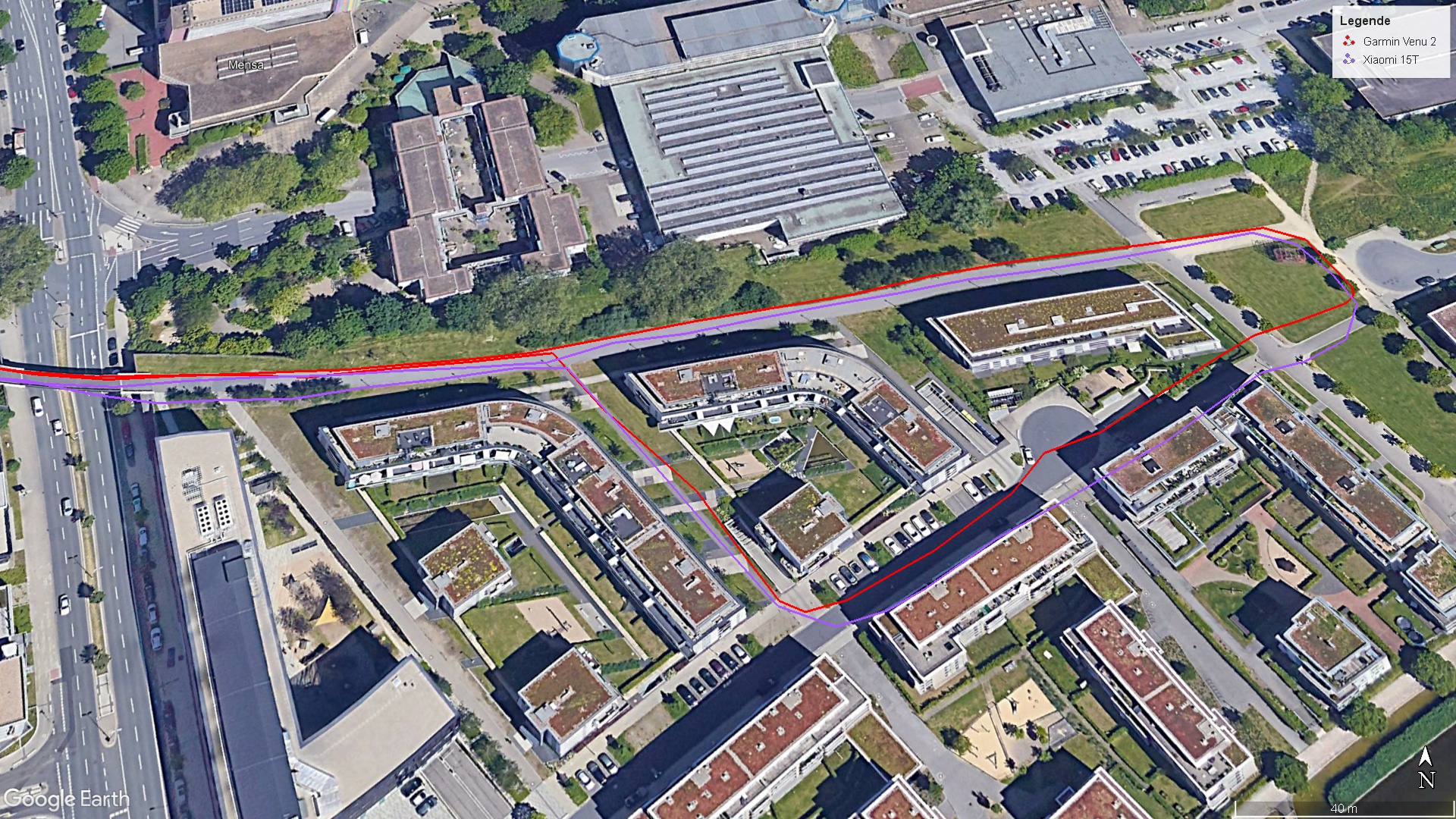 De Xiaomi telefoon voert buitenshuis snel een Satfix uit met een hoge nauwkeurigheid van 1 meter. In onze praktijktest vergelijken we de Xiaomi 15T met een Garmin smartwatch (Venu 2). Beide hebben enkele onnauwkeurigheden, maar de positionering van de telefoon uit het middensegment is meer dan voldoende voor navigatietaken.