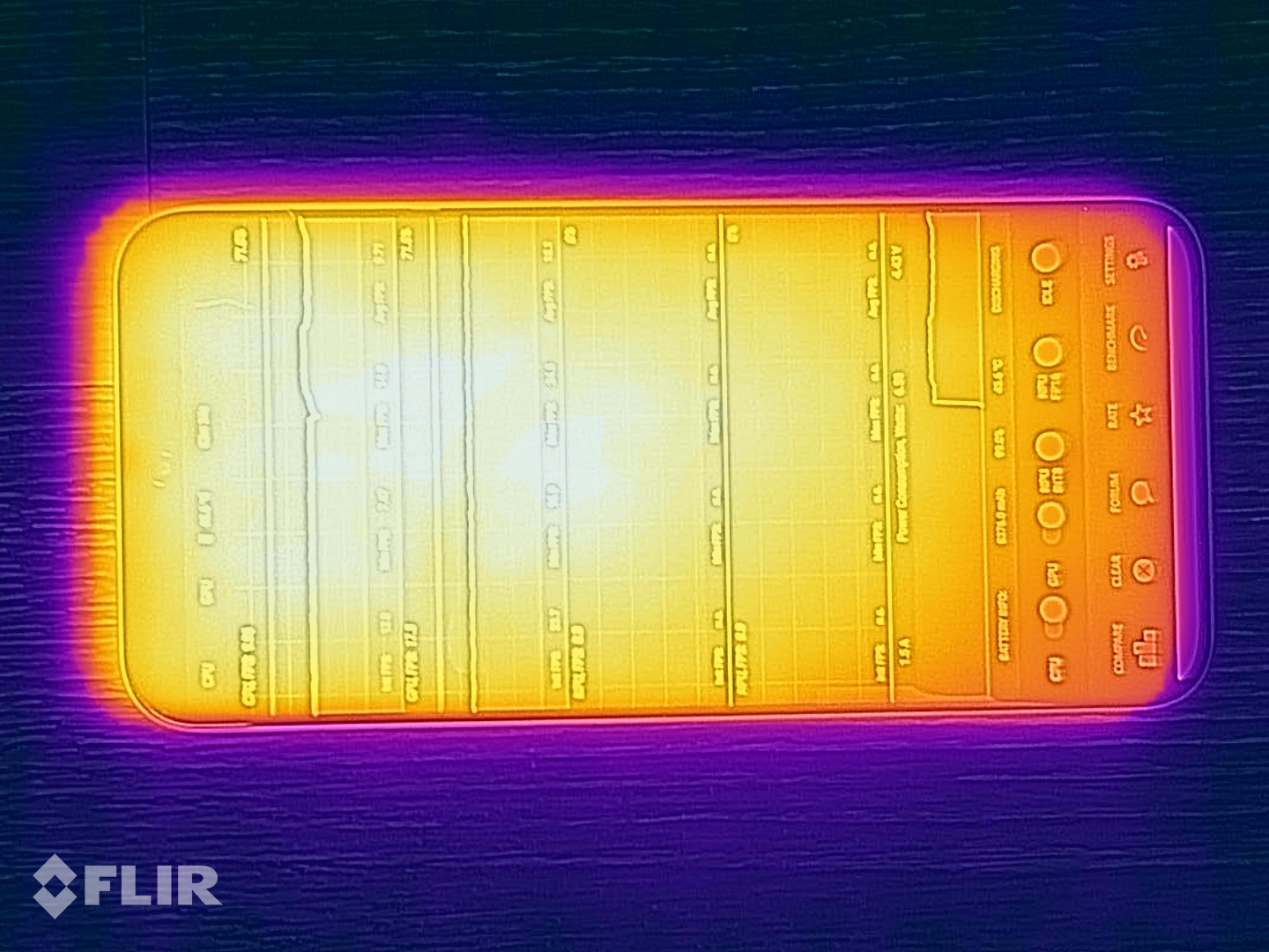 (±) De maximumtemperatuur aan de bovenzijde bedraagt 42.8 °C / 109 F, vergeleken met het gemiddelde van 35.2 °C / 95 F, variërend van 21.9 tot 247 °C voor de klasse Smartphone.