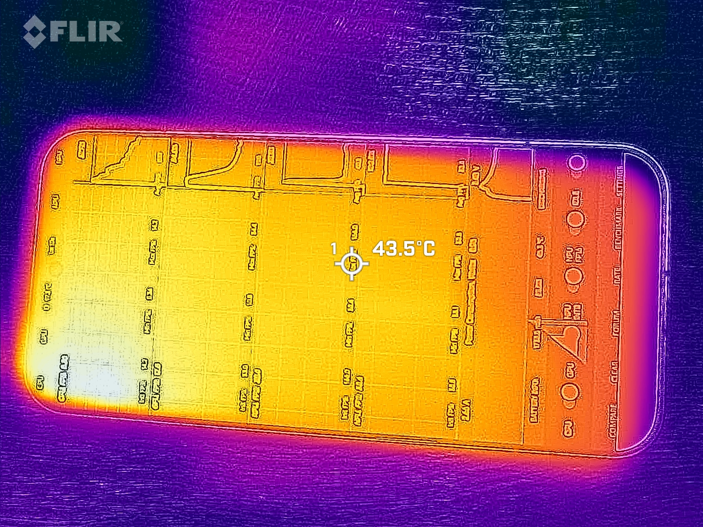 Onder belasting wordt de telefoon merkbaar warm, en na een tijdje wordt het frame van het apparaat echt heet. Vervolgens overbelastte de telefoon twee keer in onze stresstest en moest deze eerst afkoelen voordat de benchmark verder kon gaan.