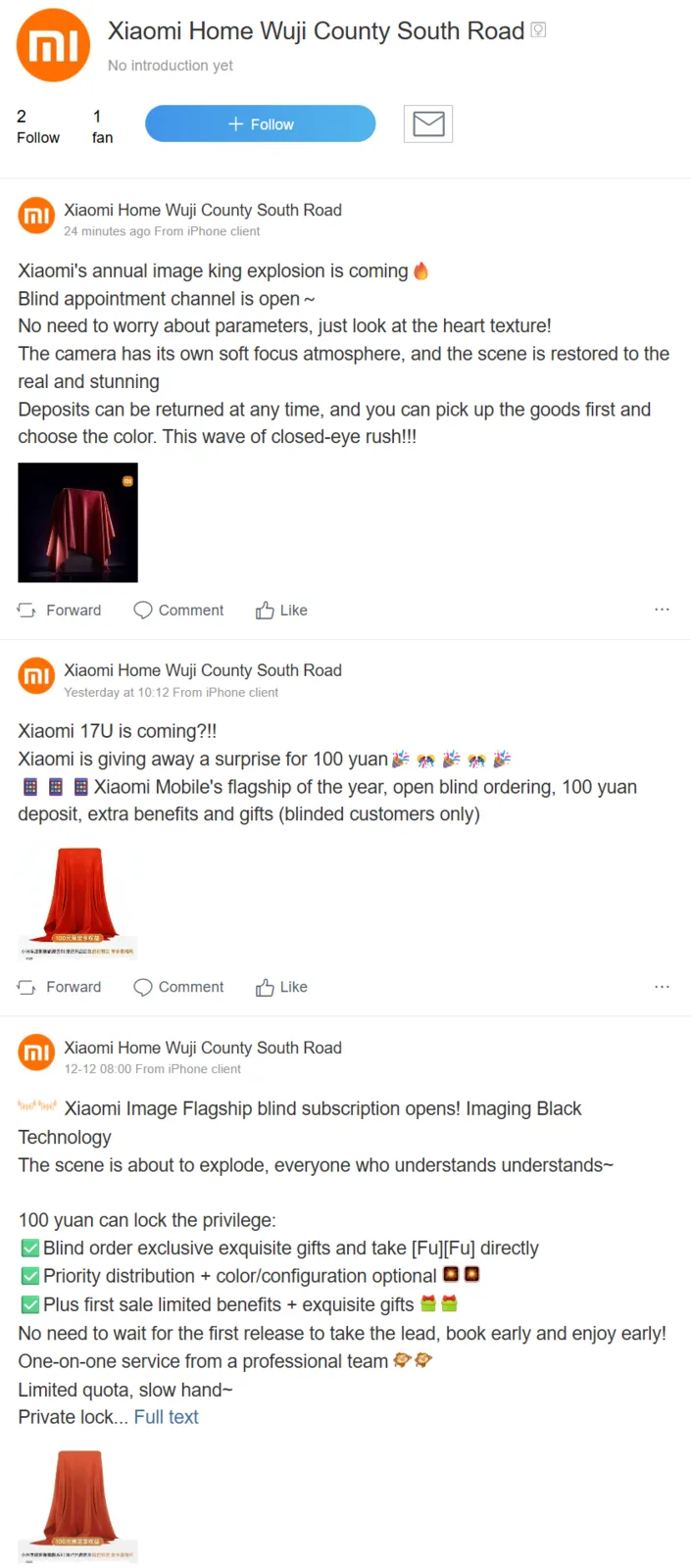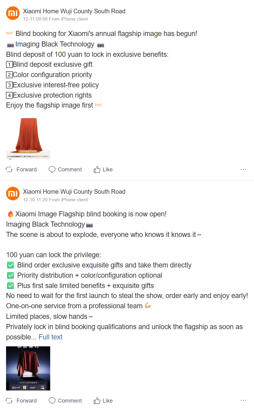 Chinese smartphone-fans die hun handen willen leggen op wat waarschijnlijk een van de spannendste vlaggenschip-telefoons van volgend jaar is, kunnen nu al een aanbetaling van 100 yuan (ongeveer $14) doen om de Xiaomi 17 Ultra van tevoren te reserveren, zoals gepromoot door de Xiaomi Store op Weibo. In een van de vele berichten over dit onderwerp wordt zelfs expliciet verwezen naar het nog niet uitgebrachte toestel door te stellen "Xiaomi 17U komt eraan?!!", ook al is het op dit moment nog steeds een "blinde boeking".