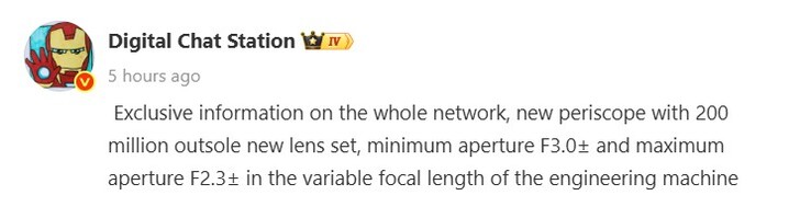 De betreffende leaker heeft nu nog een detail onthuld over deze potentiële 200 MP optische zoomoplossing met Leica-optiek: de diafragmawaarden aan beide uiteinden van het brandpuntsbereik. Volgens de leaker kan een diafragma van f/2.3 worden verwacht bij de equivalente brandpuntsafstand van 70mm en f/3.0 bij 100mm, een typisch kenmerk van minder dure zoomlenzen die minder licht doorlaten naarmate de brandpuntsafstand toeneemt. De tekst suggereert ook dat dit een interne periscooplens zou kunnen zijn die in de Xiaomi 17 Ultra is ingebouwd, vergelijkbaar met die in de Sony Xperia 1 VII. Deze informatie verwijst naar een huidig testtoestel, dus wijzigingen zijn nog mogelijk voor de lancering
