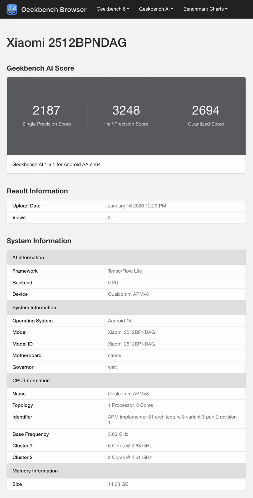 De wereldwijde versie van de Xiaomi 17 Ultra is nu opgedoken op Geekbench. De wereldwijde variant, die herkenbaar is aan het modelnummer 2512BPNDAG, zal naar verwachting buiten China alleen door de Xiaomi 17 worden vergezeld. Het zal u niet verbazen dat de Xiaomi 17 Ultra een Qualcomm Snapdragon 8 Elite Gen 5 chipset. Ook zal het toestel buiten China verkrijgbaar zijn met Android 16, in tegenstelling tot de recente Xiaomi 15T Pro (momenteel $844,50 op Amazon).