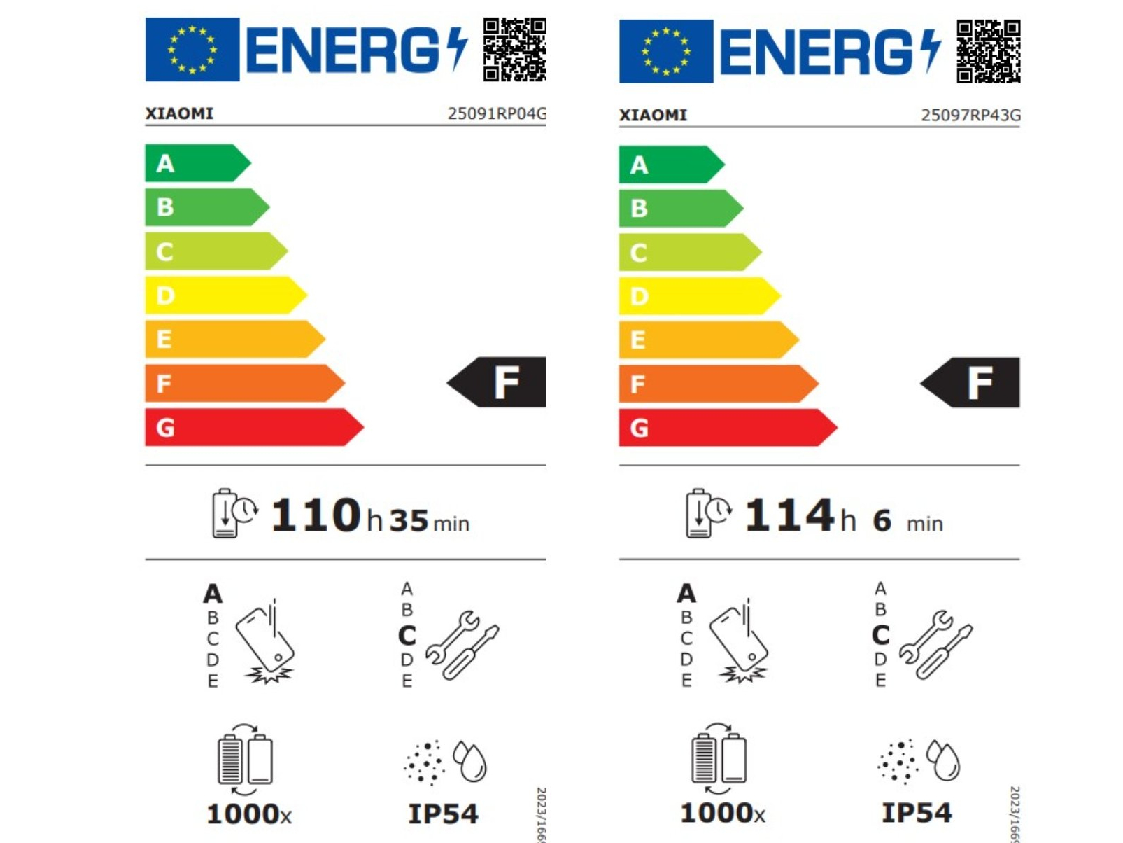 Ondertussen heeft Sudhanshu Ambhore energielabels van de EU verkregen voor de 25091RP04G en 25091RP43G. Uiteindelijk onthullen deze modelnummers zelf niet veel. De Pad 8 en Pad 8 Pro worden in China uitgebracht met de modelnummers 25091RP43C