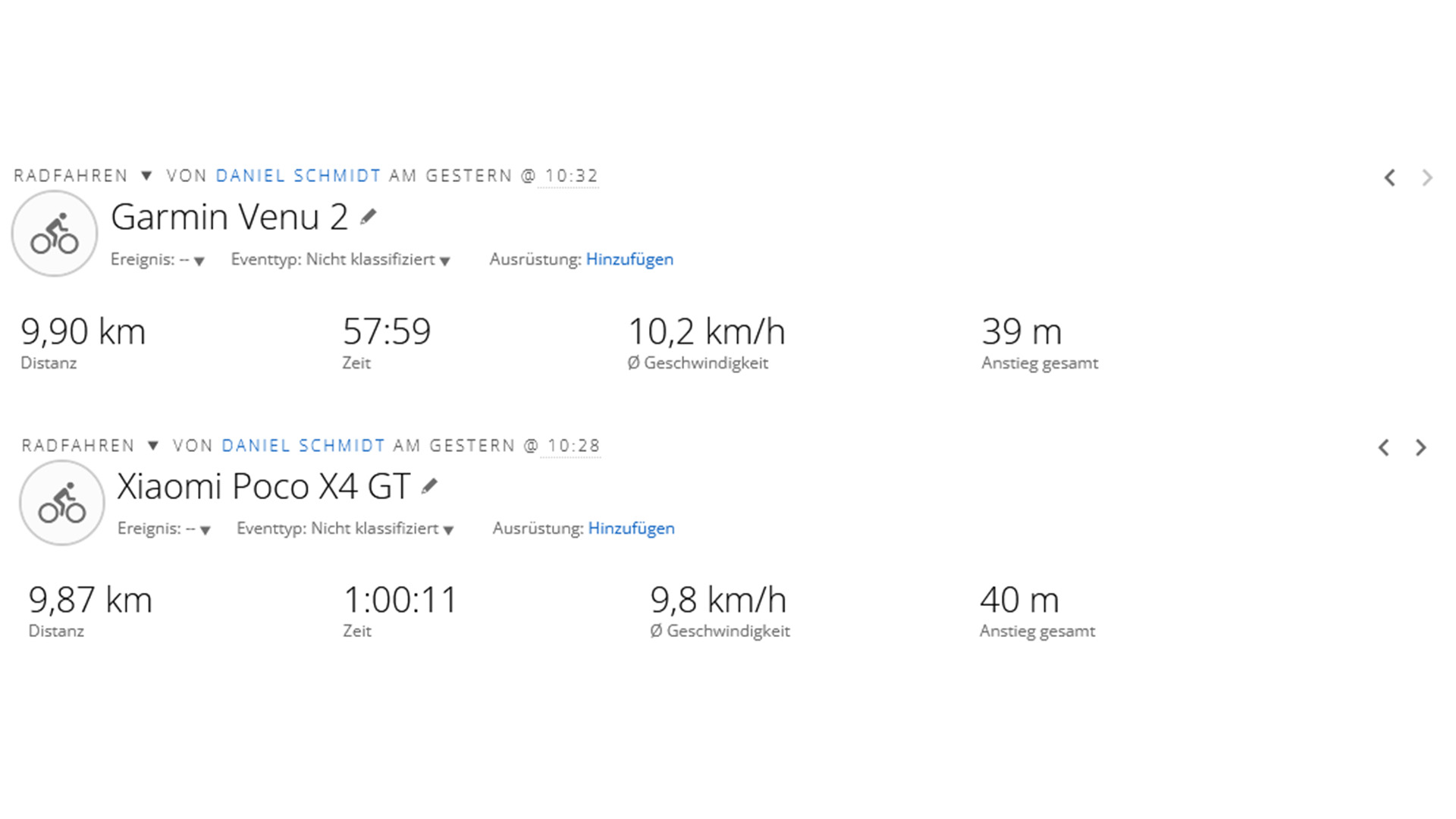 In onze praktijktest voorzag de Poco X4 GT ons van nauwkeurige locatie-informatie, wat bewijst dat hij geschikt is voor navigatiedoeleinden. Tijdens de fietstocht van ongeveer 10 km kon de telefoon de route bijna net zo nauwkeurig uitstippelen als de Garmin Venu2 fitness smartwatch (meegenomen ter vergelijking), afgezien van enkele kleine afwijkingen.