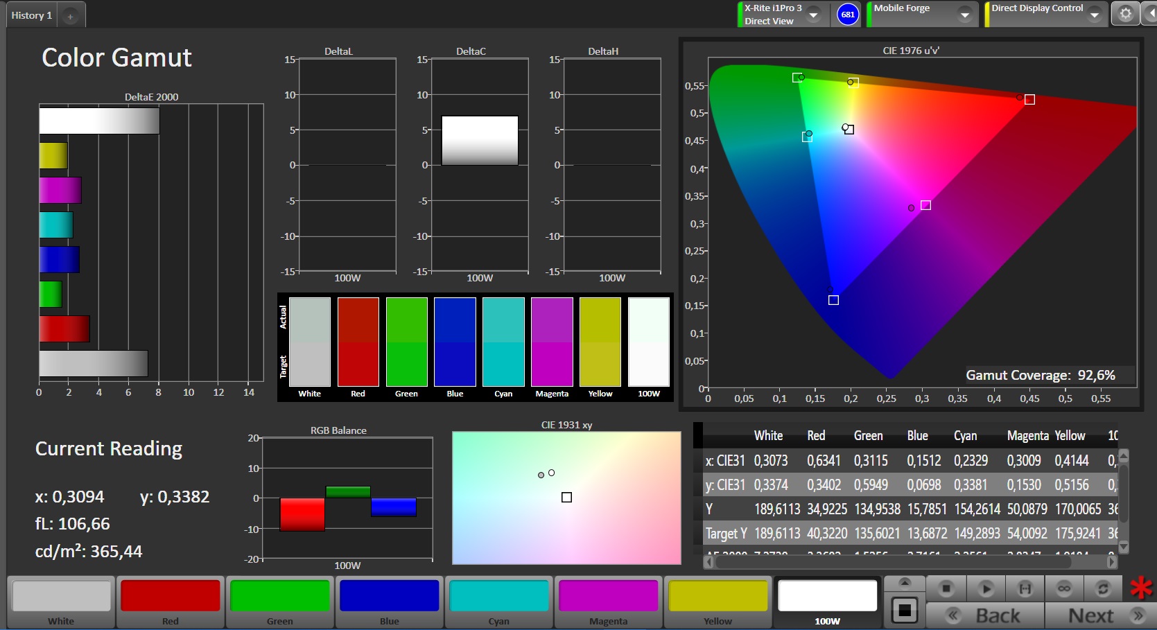 | Colorchecker dE 2000 max. * | 8.07 | 5.33 34% | 13.4 -66% | 10.75 -33% | 9.38 -16% |