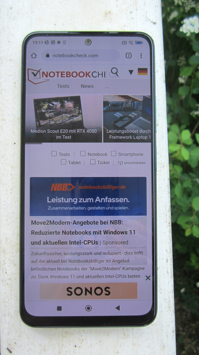 Bij helder licht maakt de Redmi Note 12 5G goede foto's met zijn hoofdcamera. Ze tonen veel detail en overtuigen met levendige en realistische kleuren. Dit wordt ook bevestigd in het testlab, want de ColorChecker testkaart laat geen grote uitschieters zien met een maximale Delta-E van <12. De beeldscherpte lijdt er echter onder als onderwerpen verder weg staan, waardoor vooral zoomopnames er flets uitzien. Ondanks de kleine beeldsensor vangt de hoofdcamera nog steeds veel licht in het donker, maar het detailniveau en de beeldscherpte liggen op een laag niveau.